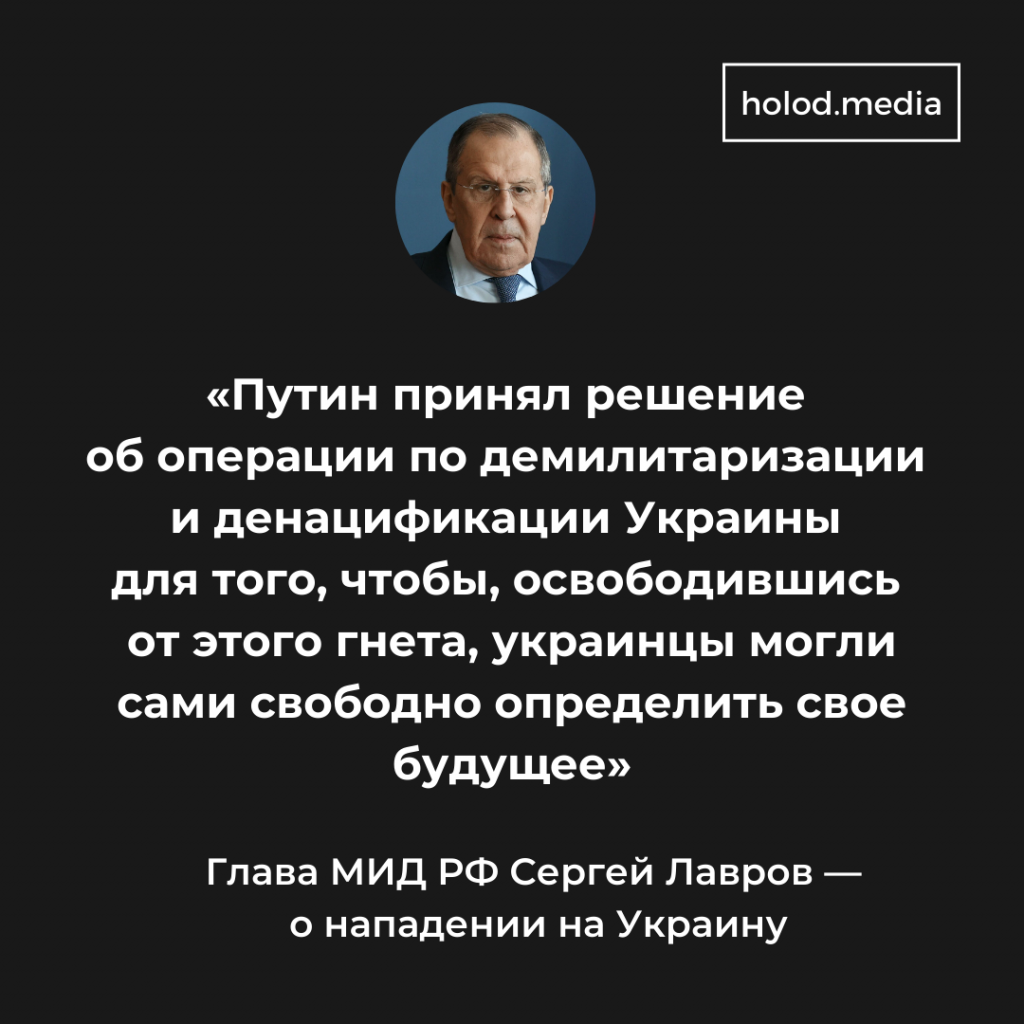 В Кремле сообщили, что готовы отправить в Минск делегацию на переговоры с украинской стороной. «Изначально президент России Владимир Путин говорил о том, что целью операции является помощь ЛНР и ДНР, в том числе путем демилитаризации и денацификации Украины. А это, собственно, и является неотъемлемым компонентом нейтрального статуса», — сказал пресс-секретарь российского президента Дмитрий Песков.