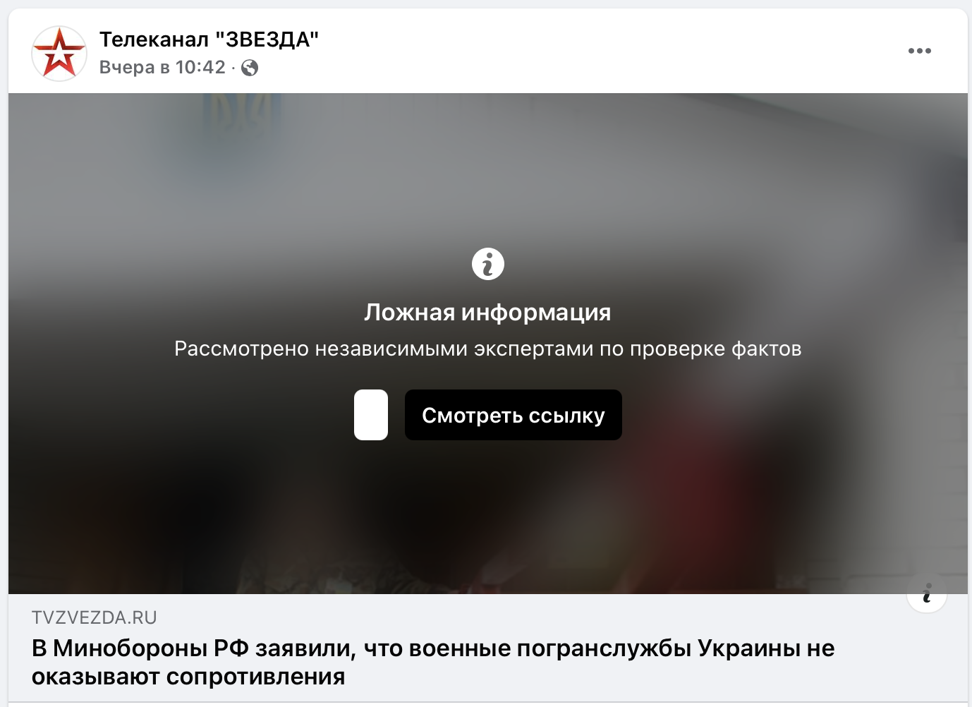 Канал «Звезда» писал, что это коснулось постов с двумя их новостями. Превью ссылки на новость в посте было заблюрено, и на нем было написано «Ложная информация. Рассмотрено независимыми экспертами по проверке фактов». При этом по ссылке можно было перейти.