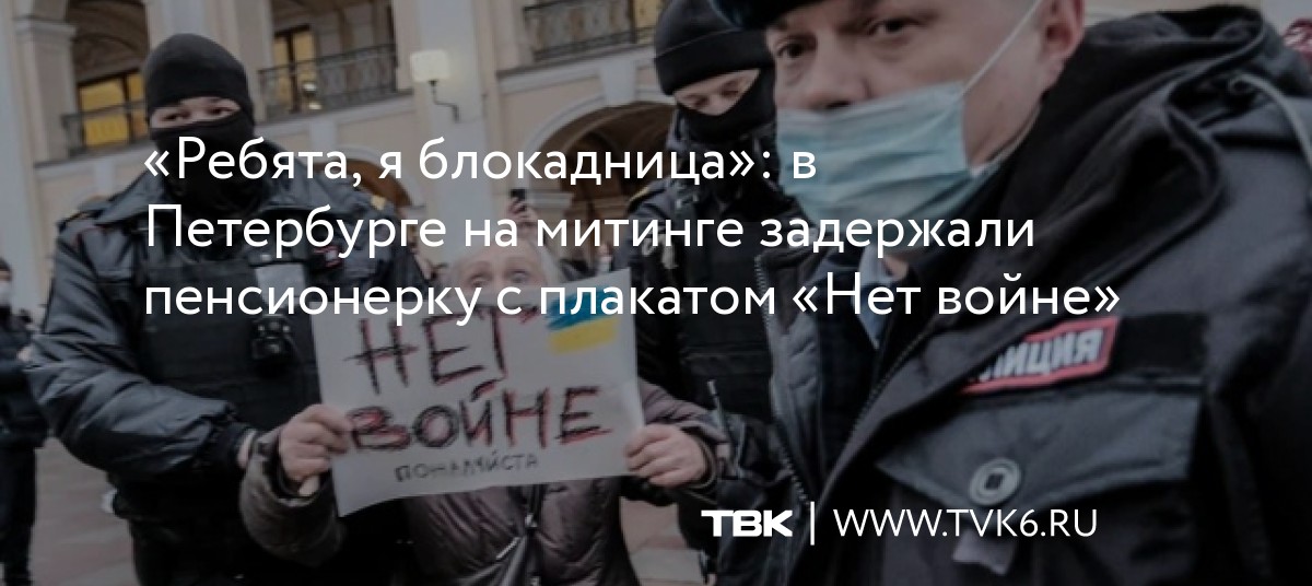 «Ребята, я блокадница!»: в Петербурге на митинге задержали пенсионерку с плакатом «Нет войне»