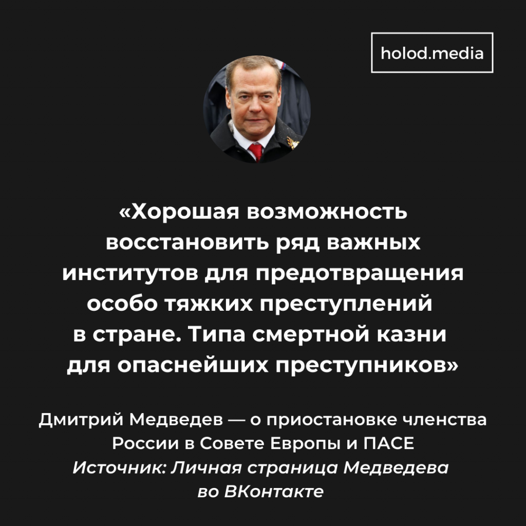 Зампред Совета безопасности России Дмитрий Медведев выступил по поводу приостановки членства страны в Совете Европы.