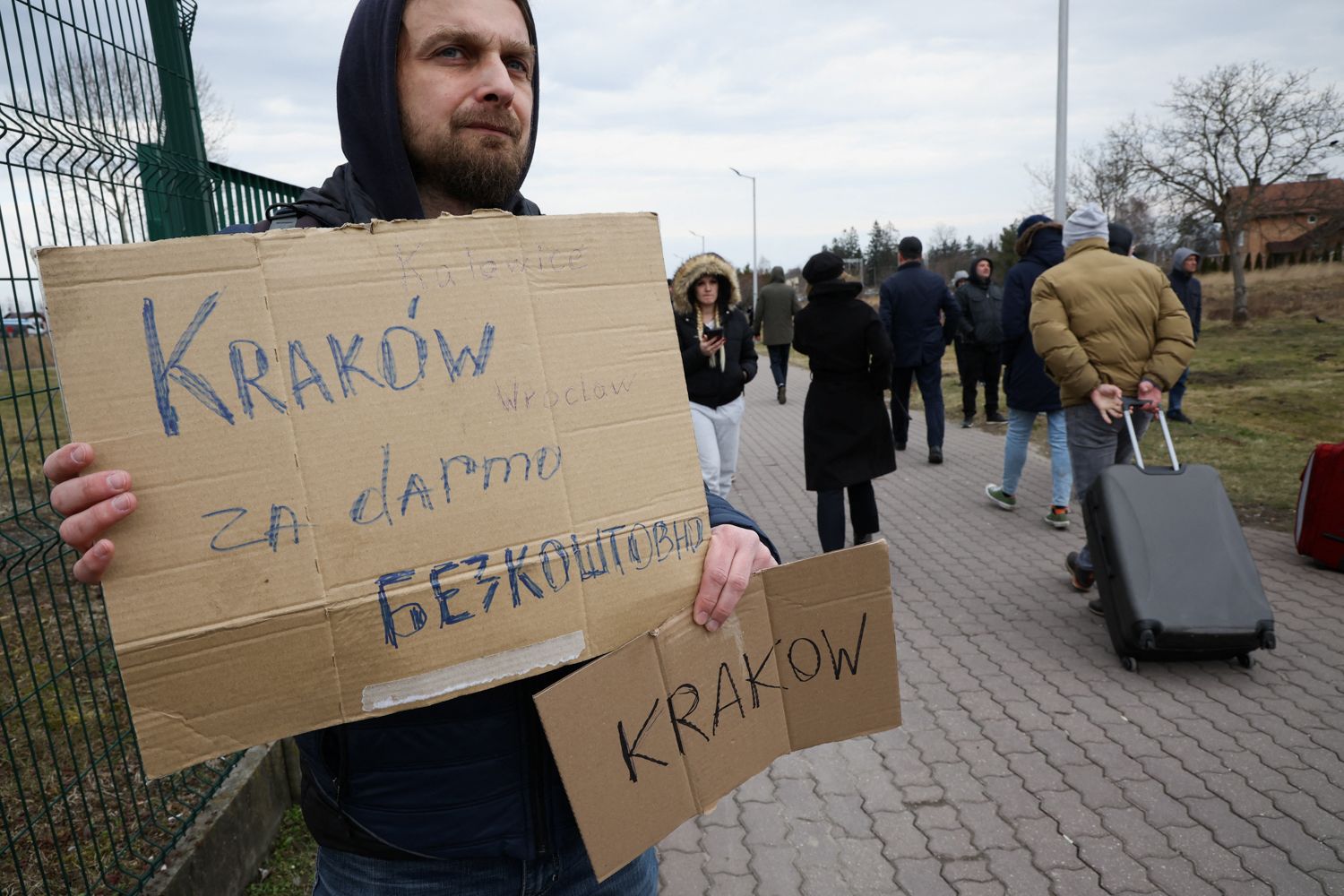 Emilio Morenatti / AP / Scanpix / LETA Long lines of cars attempt to leave Kyiv. February 24, 2022.Umit Bektas / Reuters / Scanpix / LETA People wait to board trains leaving Kyiv. Eyewitnesses told Meduza that it is now very difficult to leave the Ukrainian capital. Passengers are able to board trains free of charge, but the number of seats is limited, and the situation on the city’s streets means that reaching the station is difficult. February 25, 2022. Janek Skarzynski / AFP / Scanpix / LETA Women and children cross the Ukrainian-Polish border on foot at the Korczowa – Krakovets checkpoint. February 26, 2022.Paul Ursachi / AP / Scanpix / LETA A Ukrainian refugee crosses the border with Romania at the Solotvyno-Sighetul Marmației checkpoint. As with Poland, Moldova, Hungary and Slovakia, Romania has opened its borders to Ukrainian refugees, and is providing housing, food, and legal assistance. February 25, 2022.Alexandru Dobre / AP / Scanpix / LETA A woman with a young child in the Romanian town of Siret, not far from the Ukrainian border. February 25, 2022.Anna Szilagyi / AP / Scanpix / LETA A woman waits in the Hungarian town of Barabás to meet her relatives after they cross the Hungarian-Ukrainian border. February 25, 2022.Wojtek Jargilo / EPA / Scanpix / LETA Passengers on the train from Kyiv to Warsaw. February 25, 2022.Dimitar Dilkoff / AFP / Scanpix / LETA A line of cars waits at the Korczowa – Krakovets crossing on the Polish-Ukrainian border. February 26, 2022.Zuzana Gogova / Getty Images Refugees have their documents checked at the Ukrainian-Slovakian border, not far from the village of Vyšné Nemecké. February 25, 2022.Wojtek Radwanski / AFP / Scanpix / LETA People cross the Polish-Ukrainian border on foot at the Medyka-Szeginie checkpoint. February 25, 2022.Andreea Alexandru / AP / Scanpix / LETA Refugees in the Romanian village of Siret. February 25, 2022.Andreea Alexandru / AP / Scanpix / LETA A Ukrainian refugee with her young daughter in the village of Siret, on the border between Ukraine and Romania. February 25, 2022.Omar Marques / Getty Images Night on the border between Poland and Ukraine. This photograph was taken in Przemyśl, the second largest city in southern Poland after Kraków. February 25, 2022.Zuzana Gogova / Getty Images In the village of Vyšné Nemecké on the Ukrainian-Slovakian border, volunteers and priests from Slovakia’s Greek Orthodox Church set up a collection point for items to help refugees. February 25, 2022.Zuzana Gogova/Getty Images Altruistic Slovaks meet Ukrainian refugees in Vyšné Nemecké, and drive them free of charge to other cities and villages in Slovakia. February 25, 2022.Darek Delmanowicz / EPA/ Scanpix / LETA A help point for refugees in a supermarket parking lot in the Polish city of Przemyśl. From here, people can take free transport to other towns and cities in Poland. February 26, 2022.Kacper Pempel / Reuters / Scanpix / LETA A Ukrainian living in Poland waits to meet fellow countrymen in the town of Medyka, with an offer to transport them to Kraków free of charge. February 25 2022.Andreea Alexandru / AP / Scanpix / LETA Volunteers in Siret feed people crossing the Romanian-Ukrainian border. February 25, 2022.Darek Delmanowicz / EPA / Scanpix / LETA Polish soldiers carry boxes of food for refugees at a train station in Przemyśl in southern Poland. February 25, 2022.Petr David Josek / AP / Scanpix / LETA This Przemyśl train station has been transformed into a rest point for Ukrainian refugees on the road. February 24, 2022.