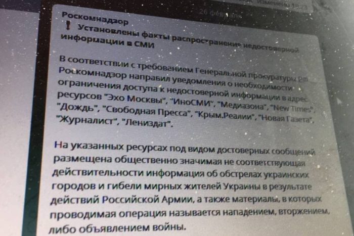 Роскомнадзор отметил, что считает «достоверной информацией» только «российские официальные информационные источники».