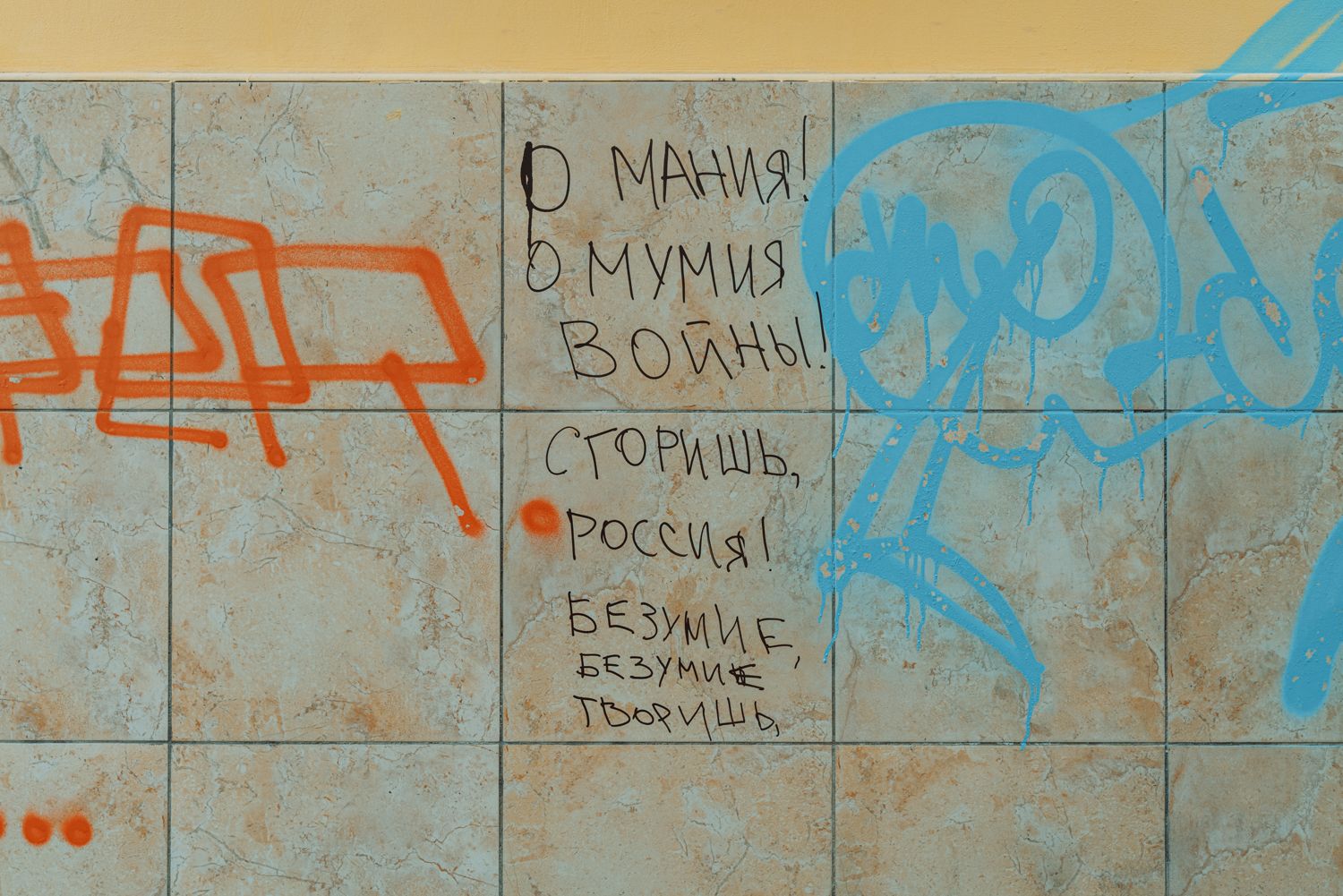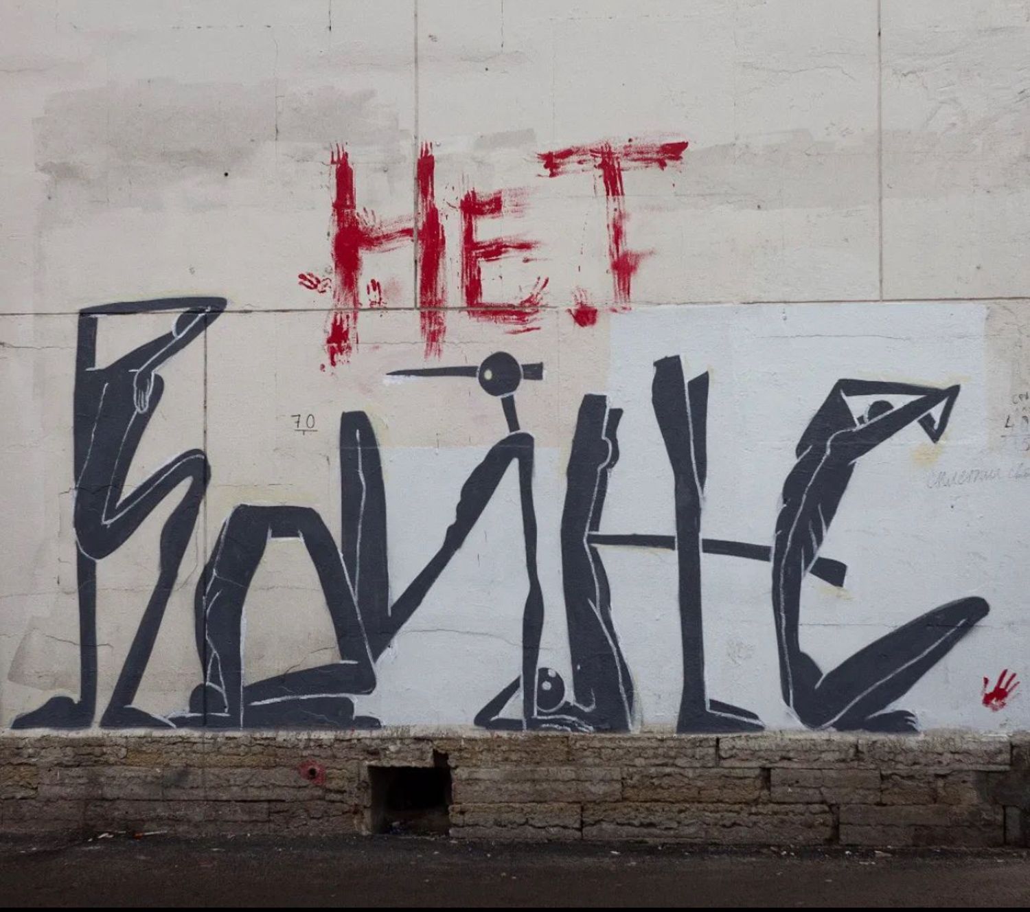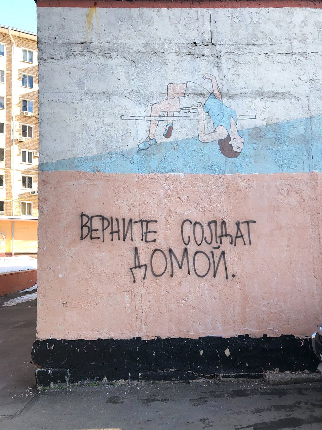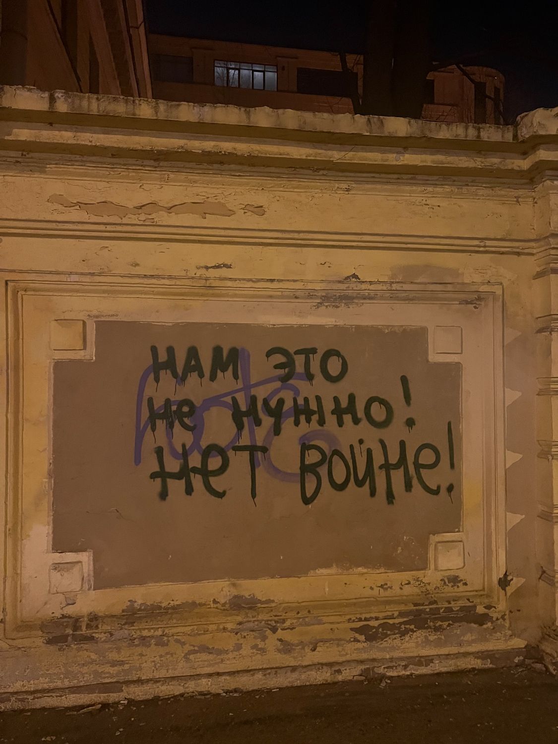На улицах по всей стране — граффити, листовки и наклейки, осуждающие вторжение