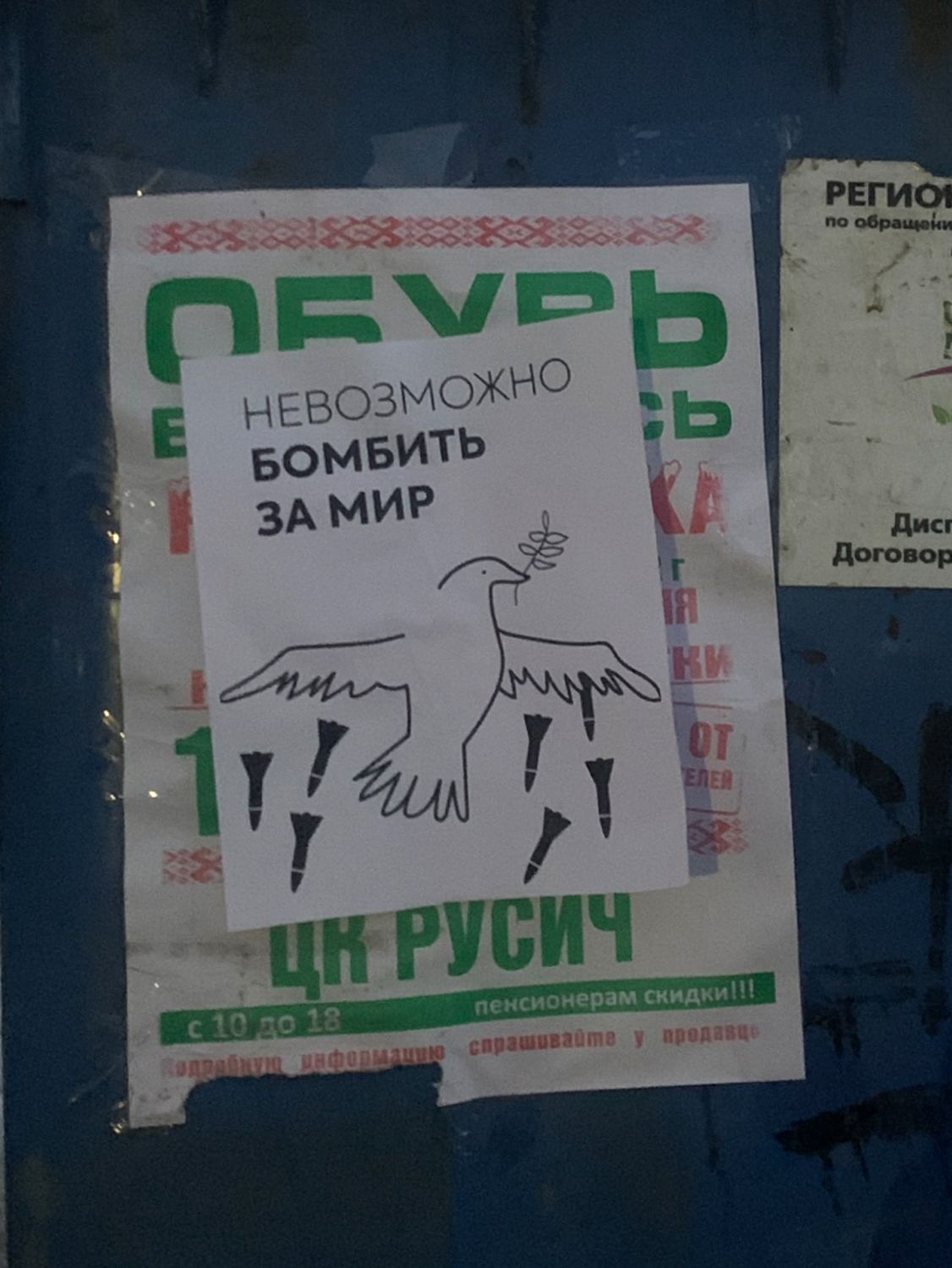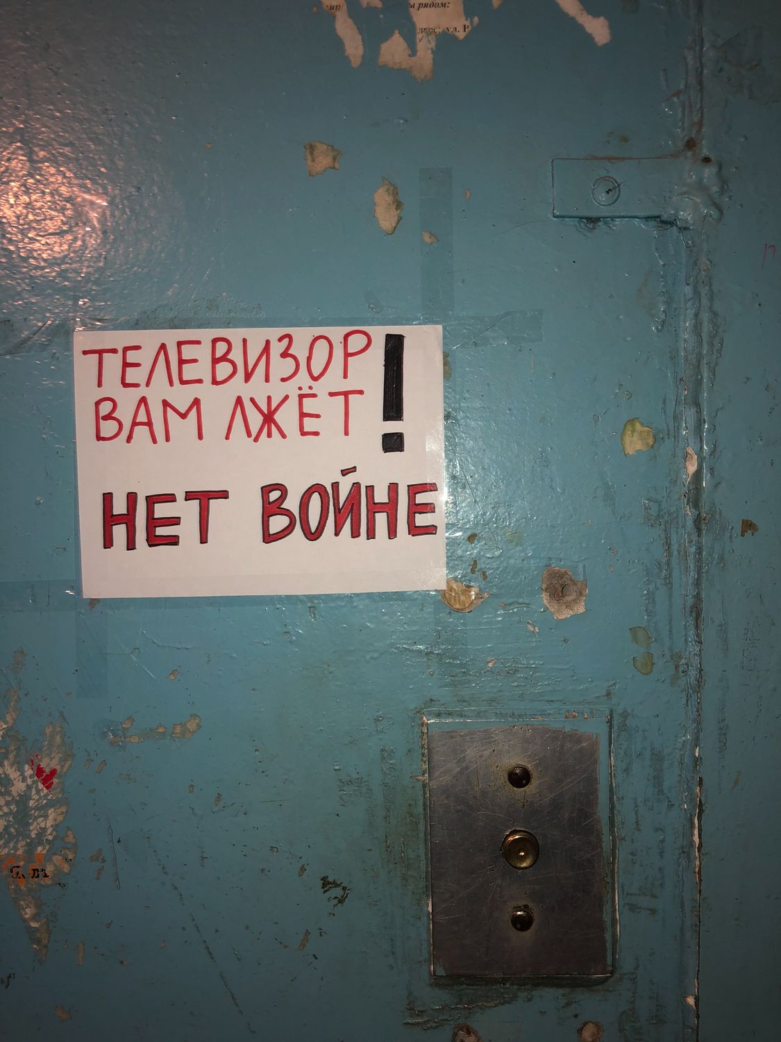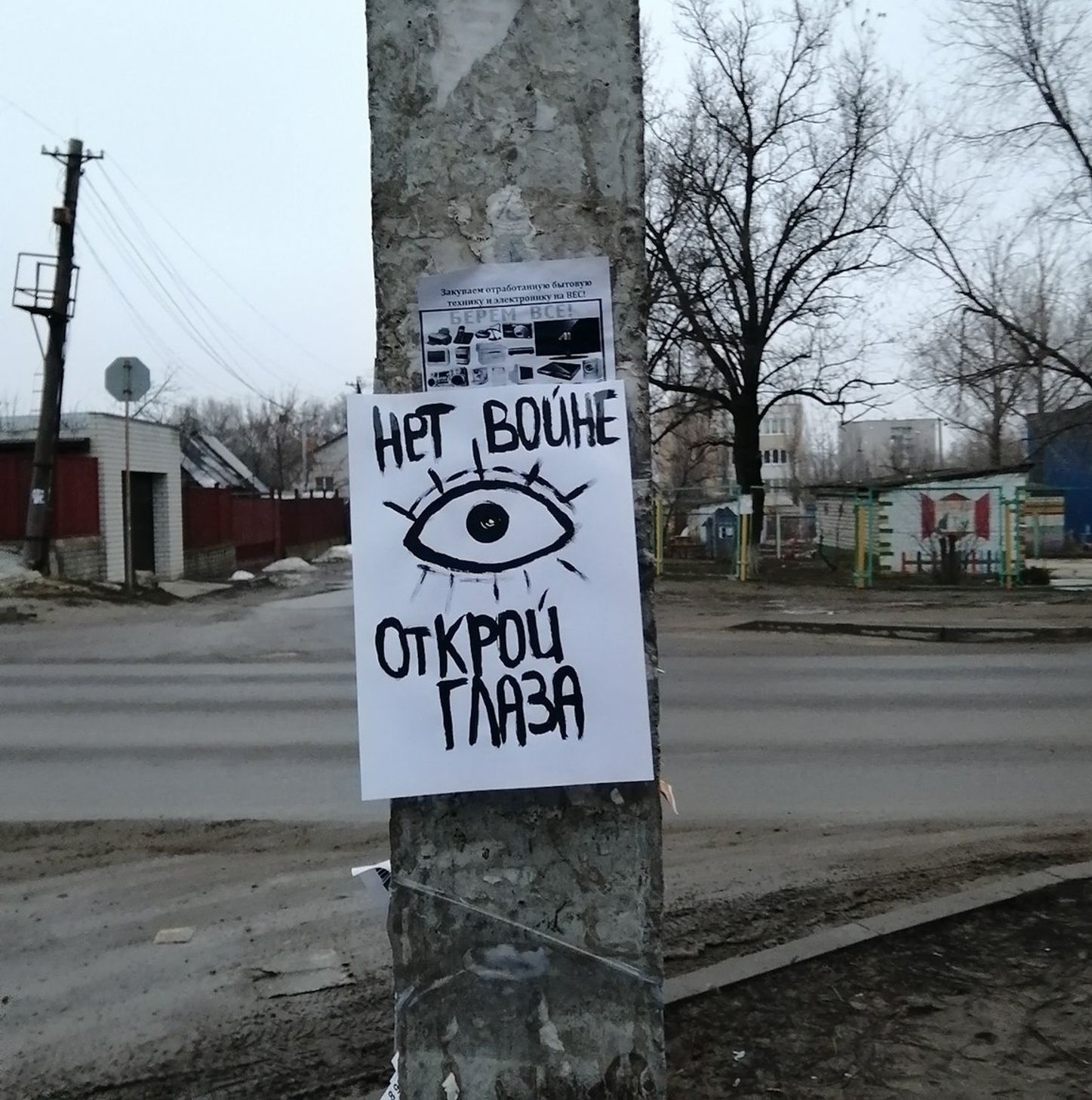 В России продолжаются мирные протестные акции против войны в Украине — даже в условиях их фактического запрета. С 24 февраля задержано около семи тысяч человек, участников преследуют даже за одиночные пикеты, им грозят многотысячные штрафы и уголовные дела, но россияне продолжают в разных формах выражать свое несогласие с Владимиром Путиным. С начала войны во многих российских городах на столбах, у подъездов и в переходах появились протестные наклейки, надписи и листовки. Их быстро срывают или закрашивают коммунальные службы, но некоторые висят сутки, или хотя бы несколько часов. Мы попросили наших читателей присылать фотографии протеста и получили несколько сотен писем — и публикуем часть из них.