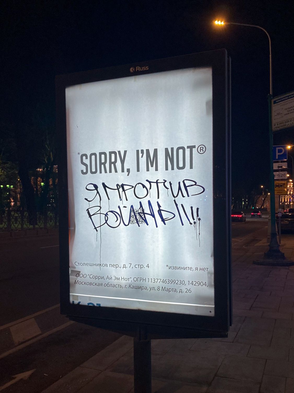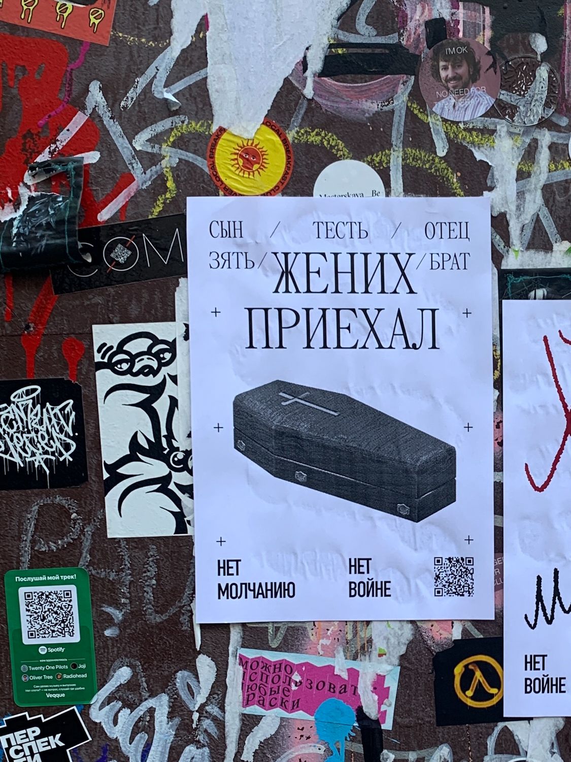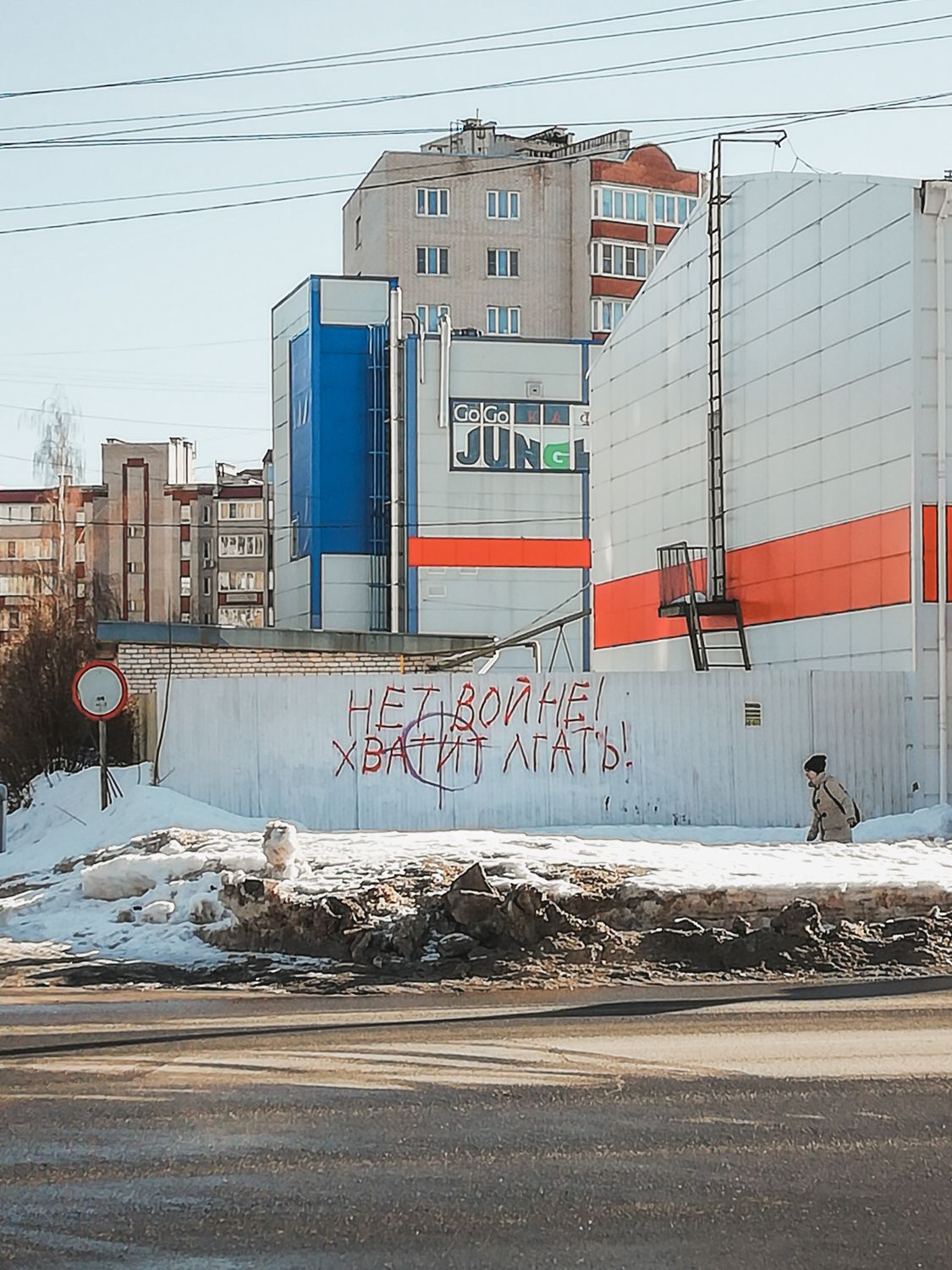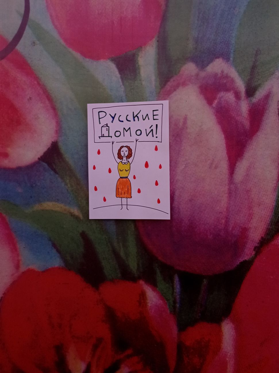 В России продолжаются мирные протестные акции против войны в Украине — даже в условиях их фактического запрета. С 24 февраля задержано около семи тысяч человек, участников преследуют даже за одиночные пикеты, им грозят многотысячные штрафы и уголовные дела, но россияне продолжают в разных формах выражать свое несогласие с Владимиром Путиным. С начала войны во многих российских городах на столбах, у подъездов и в переходах появились протестные наклейки, надписи и листовки. Их быстро срывают или закрашивают коммунальные службы, но некоторые висят сутки, или хотя бы несколько часов. Мы попросили наших читателей присылать фотографии протеста и получили несколько сотен писем — и публикуем часть из них.