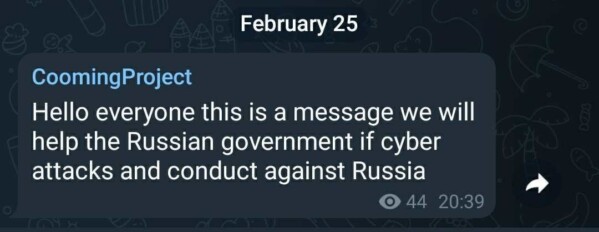 - Coomingproject — группа сообщила, что поможет российскому правительству в случае кибератак и действий против РФ. Банду связывают с утечкой данных Южноафриканского национального космического агентства в 2021 году.