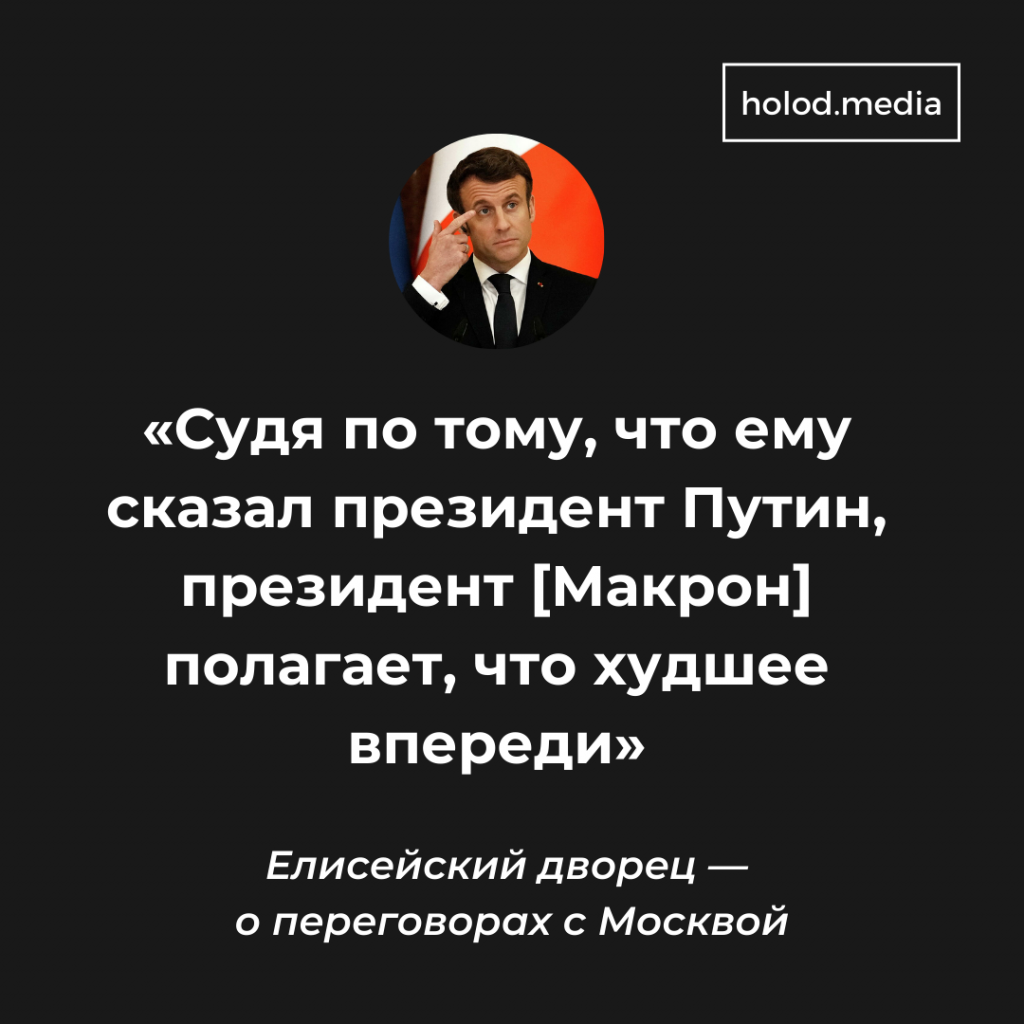 В Париже сообщили, что, по мнению президента Эммануэля Макрона, Москва намерена «взять под контроль» всю Украину.