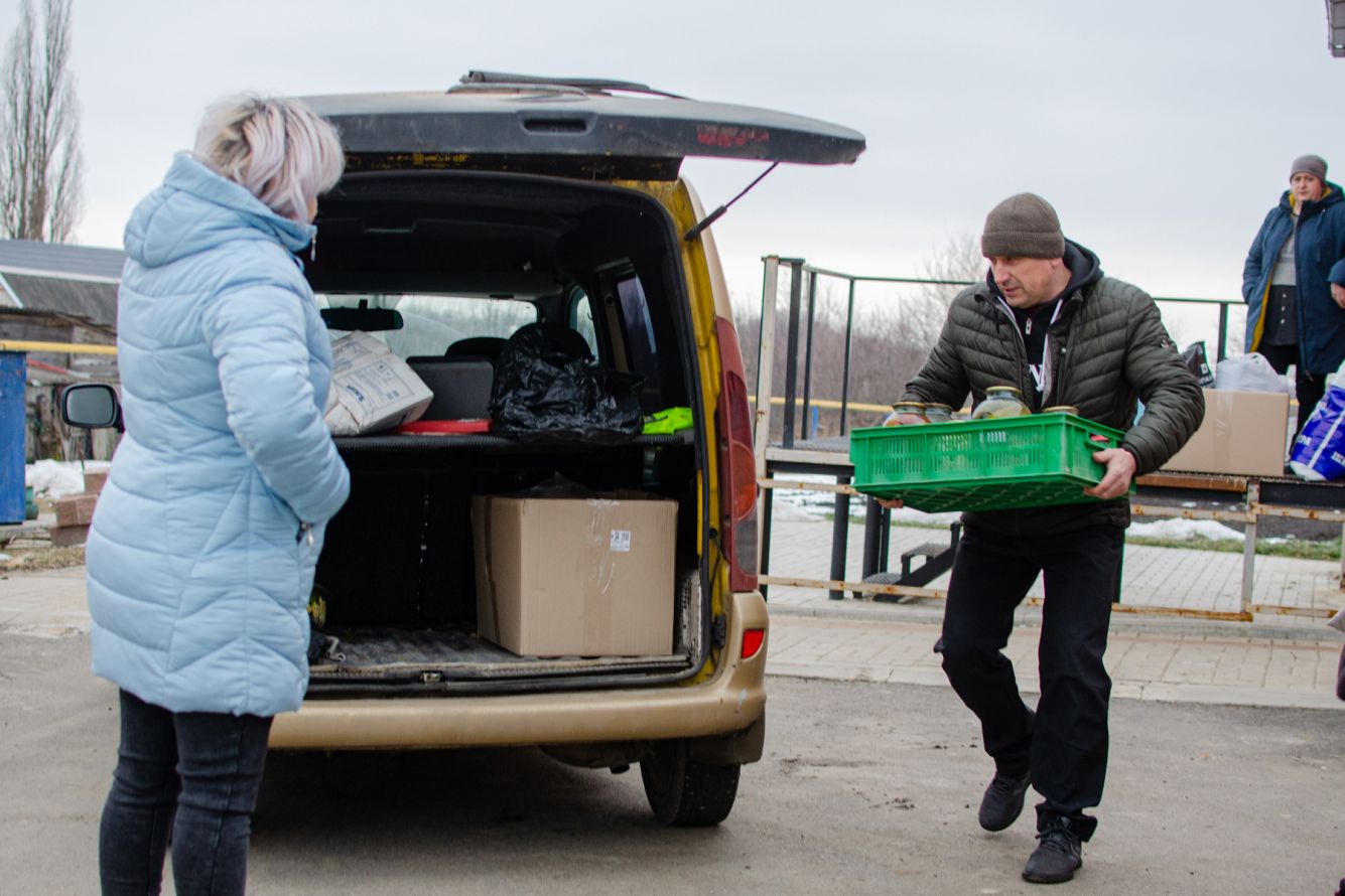 На крыльце магазина хозтоваров в крупном поселке Красная Яруга в 70 километрах от Белгорода стоят его владельцы, супруги Елена и Геннадий Жуковы. Рядом с супругами — коробка с мылом, зубными щетками, свечами. В отдельном лотке — банки с солеными огурцами и помидорами. Все это собрали жители поселка для российских солдат. Четвертый день Жуковы собирают «народную помощь» от местных для армии. Жители Красной Яруги отвозят ее к границе.