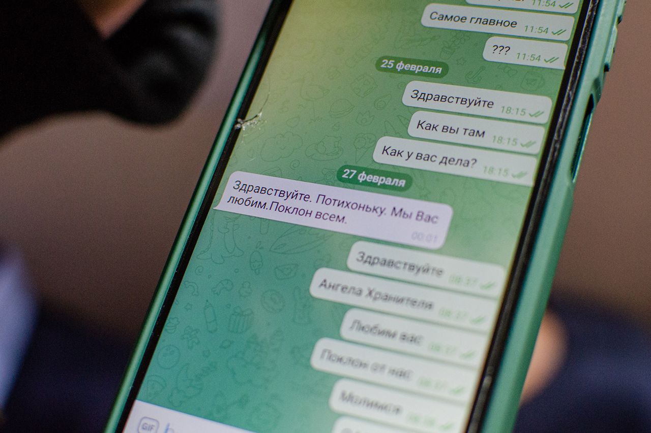 Женщина показывает переписку с ним в телефоне. Последнее сообщение ее родственник отправил 27 февраля из убежища, через три дня после российского вторжения в Украину: «Мы вас любим. Поклон всем». Где он сейчас, женщина не знает. По ее словам, дядя поддерживает российских военных, потому что «адекватно размышляет» и «не слушает украинскую дезинформацию».