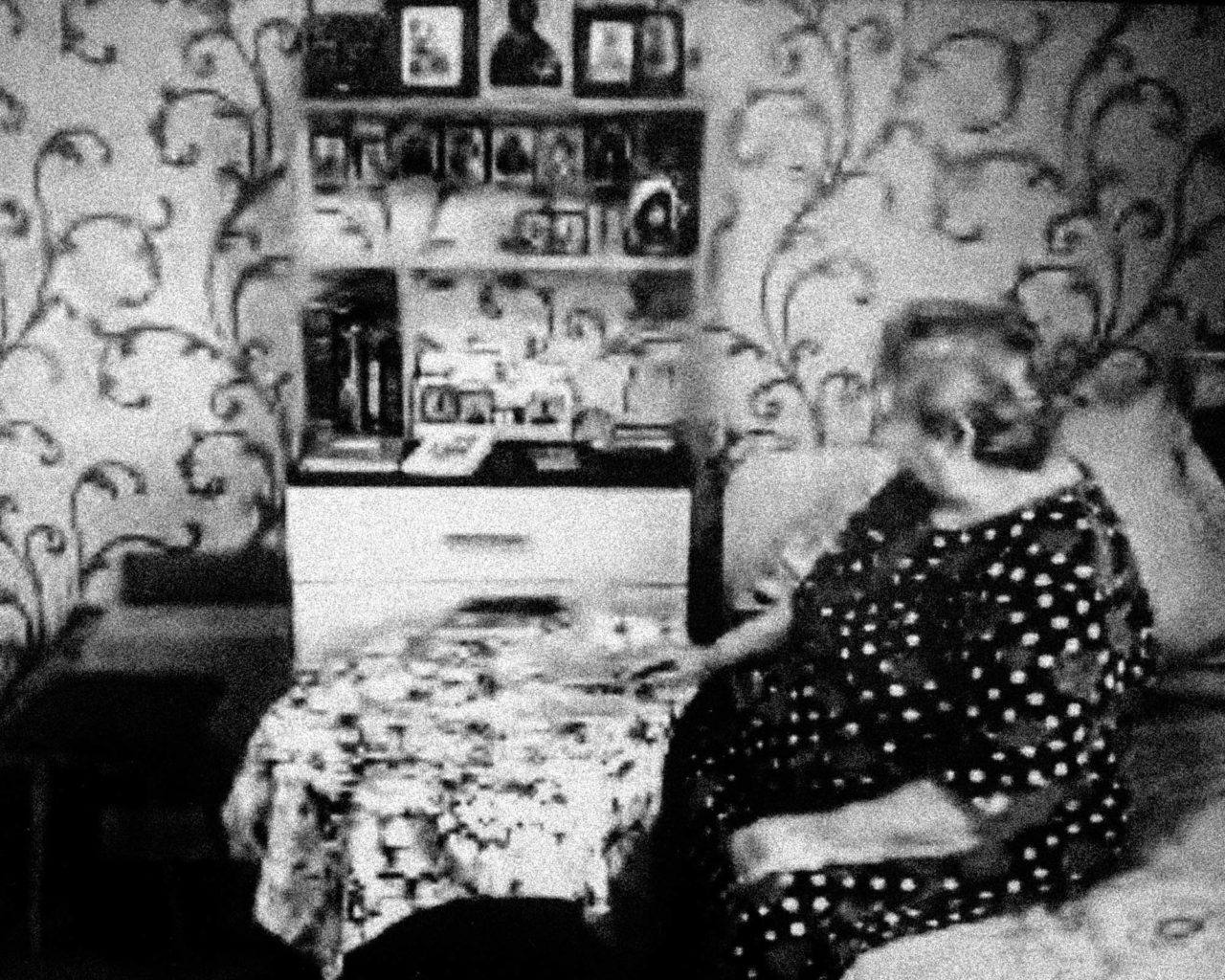 Людмила Николаевна смотрит телевизор: сидит на своей кровати (кроме нее из сидячих мест — только старая колченогая табуретка в углу), за ней — две пухлые взбитые подушки в наглаженных наволочках, рядом на полках целый иконостас с высокой свечкой в нарядном голубом подсвечнике. Николай Чудотворец — покровитель моряков и путешественников. Серафим Саровский — аскет, несколько лет питался только травой. Неупиваемая чаша, исцеляющая от болезней. Матрона Московская — помощница в любых скорбях.