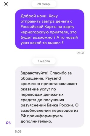 - PaySend приостановил переводы с российских банковских карт на зарубежные.