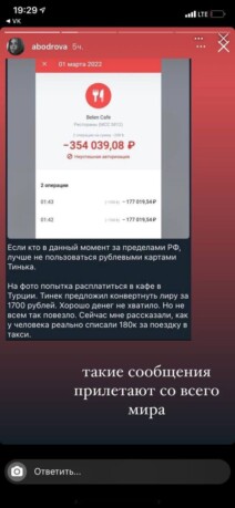 Вообще, именно россияне, оказавшиеся сейчас за рубежом, похоже, испытывают наибольшие трудности. Ещё 25 февраля барнаулец, отдыхающий в турецкой Аланье, пожаловался, что его карта банка ВТБ в этой стране уже не работает. По его словам, проблемы были и с картой банка Тинькофф — он не смог ни расплатиться, ни снять деньги.