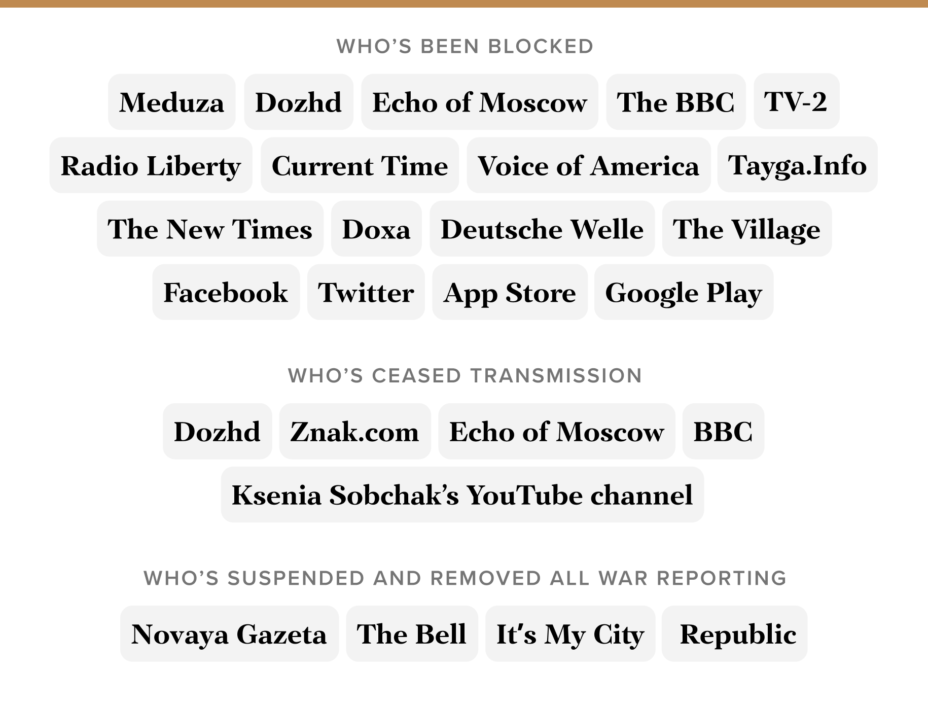 Here are all Russia’s independent media outlets banned, blocked, or shuttered in just the past few days