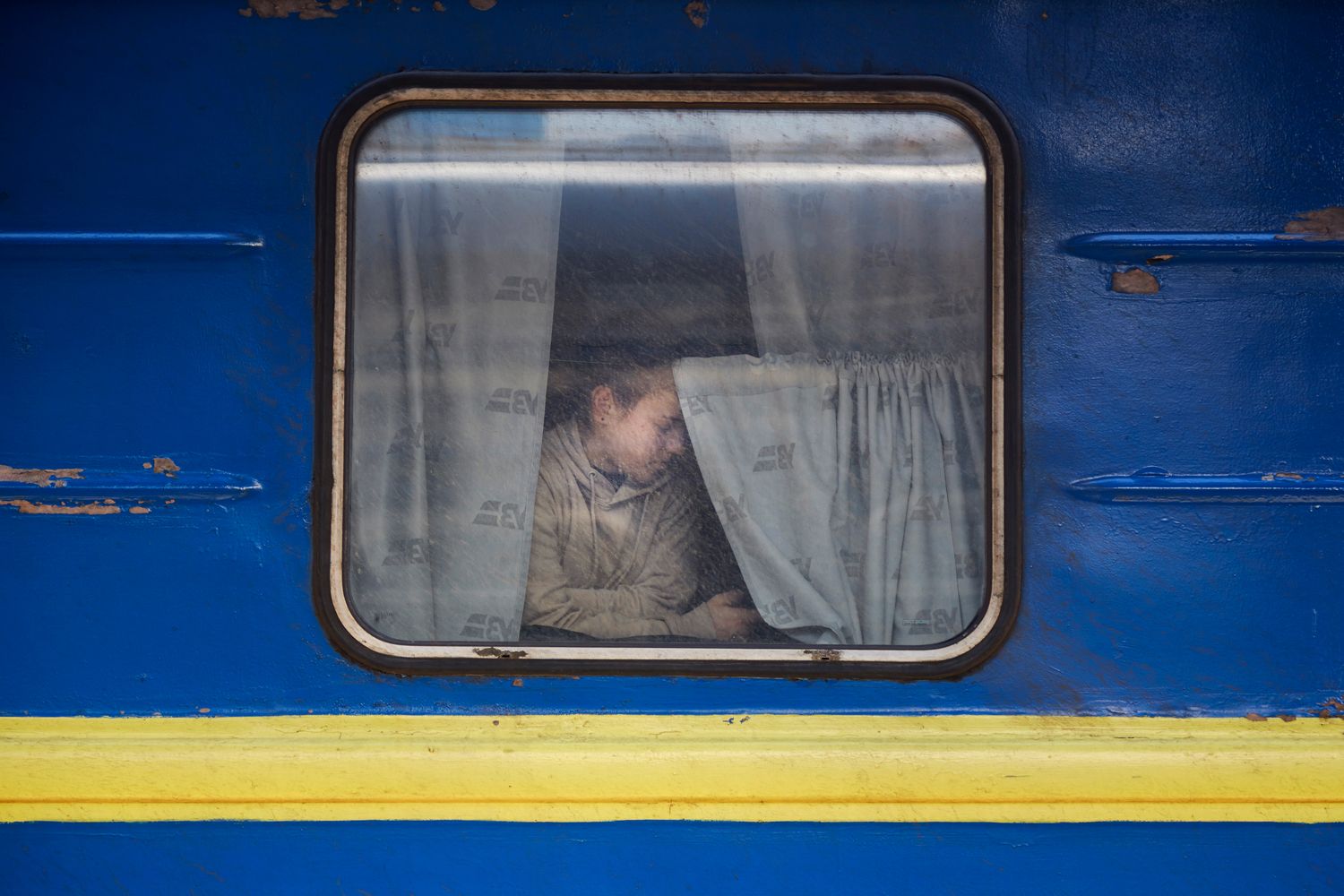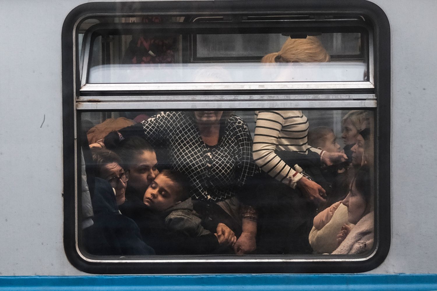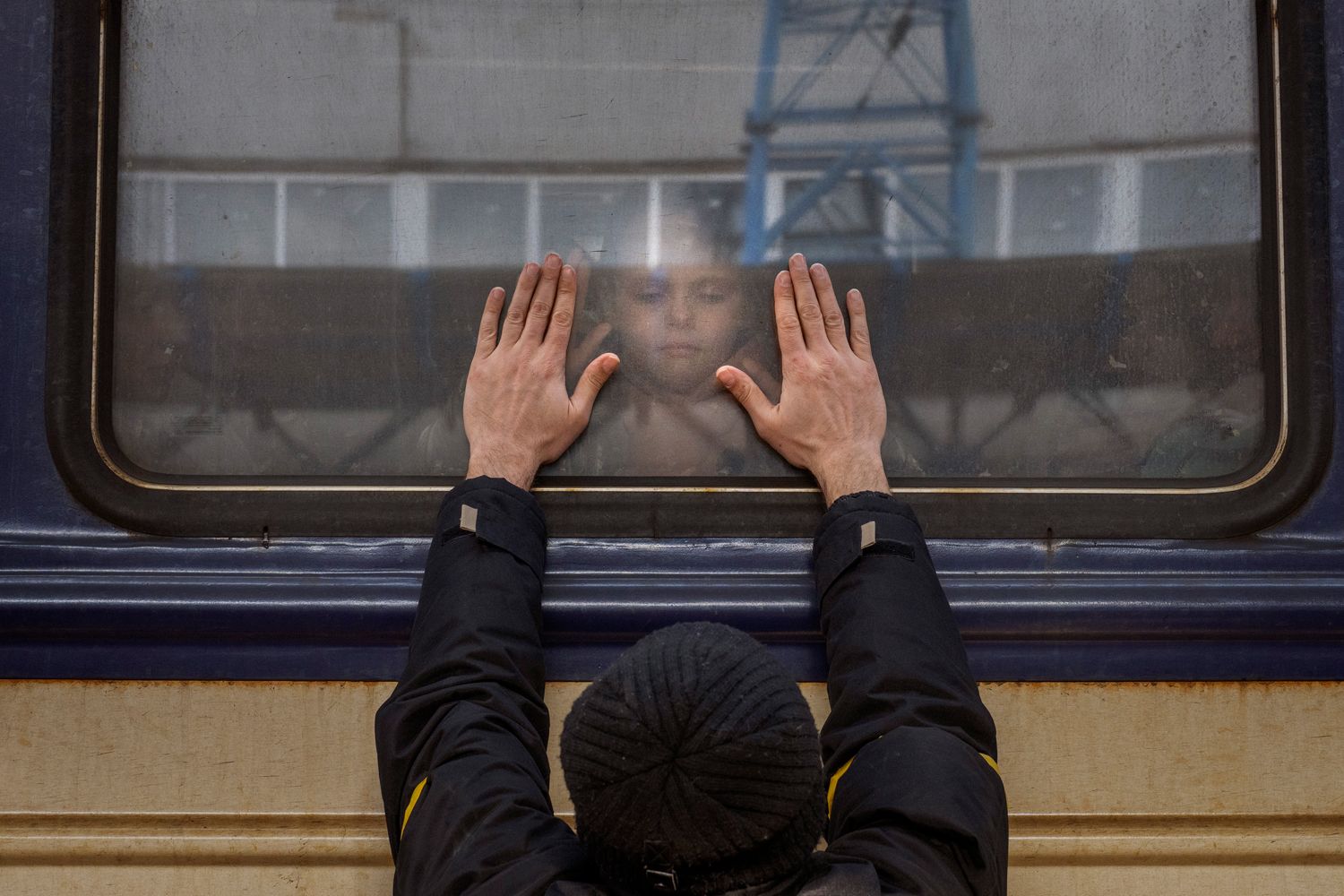 Pierre Crom / Getty Images An evacuation train headed toward western Ukraine. Kyiv, February 26, 2022Miguel A. Lopez / EPA / Scanpix / LETA A woman and her children leaving Lviv. This shot was taken from a train going the opposite direction — to Lviv from the Polish city of Przemyśl. Many Ukrainians have decided to return to their country to protect their loved ones during the war. Poland, March 4, 2022Emilio Morenatti / AP / Scanpix / LETA 41-year-old Bogdan says goodbye to his wife, Lena, before she leaves for Lviv from a Ukrainian train station. Bogdan will stay to fight in the war while his family tries to leave the country and seek asylum abroad. March 3, 2022Andriy Dubchak / AP / Scanpix / LETA Vlada, Katrin, and Danila look out from the window of an unheated train car that will take them to Lviv. Kyiv, March 3, 2022.Gleb Garanich / Reuters / Scanpix / LETA Children say goodbye to their father. Kyiv, March 3, 2022Chris McGrath / Getty Images A woman in an evacuation train going from Irpin to Kyiv. Two thousand civilians have managed to escape from Irpin, where active hostilities are ongoing. March 4, 2022Sergey Dolzhenko / EPA / Scanpix / LETA Ukrainian refugees leaving Kyiv. March 5, 2022Dimitar Dilkoff / AFP / Scanpix / LETA A train at Kyiv’s central railway station. March 5, 2022Alejandro Martinez Velez / ZUMA Press / Scanpix / LETA Children draw pictures on a train car window at the Lviv train station. Lviv has become the main transit point for refugees on their way to Europe; most are headed to Poland. March 2, 2022Vadim Ghirda / AP / Scanpix / LETA People bid their relatives farewell before leaving for Lviv. Kyiv, March 3, 2022Vadim Ghirda / AP / Scanpix / LETA A woman in a train headed for Lviv. Kyiv, March 3, 2022Emilio Morenatti / AP / Scanpix / LETA Alexander says goodbye to his five-year-old daughter, Anna, who’s about to leave for Lviv. Kyiv, March 4, 2022