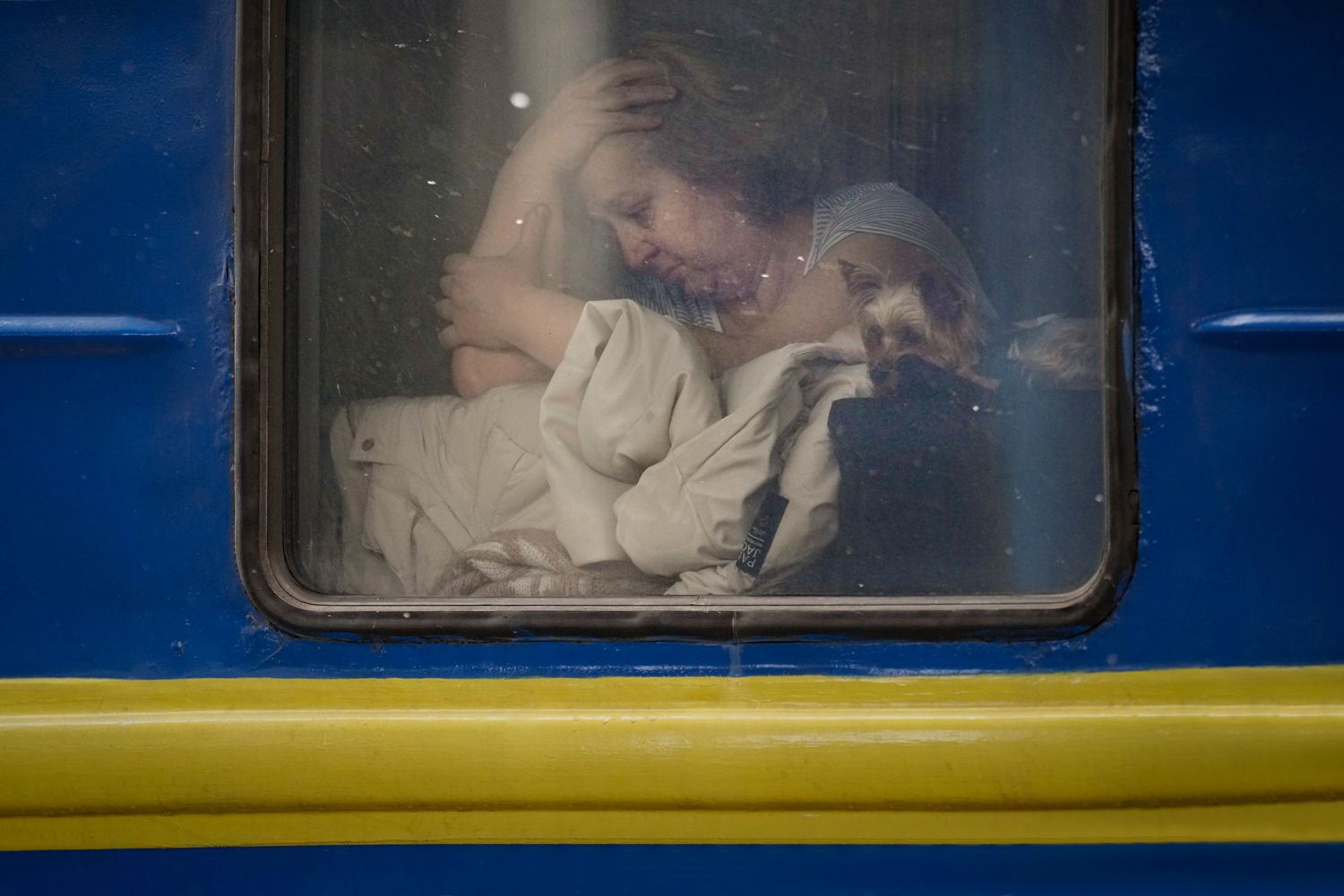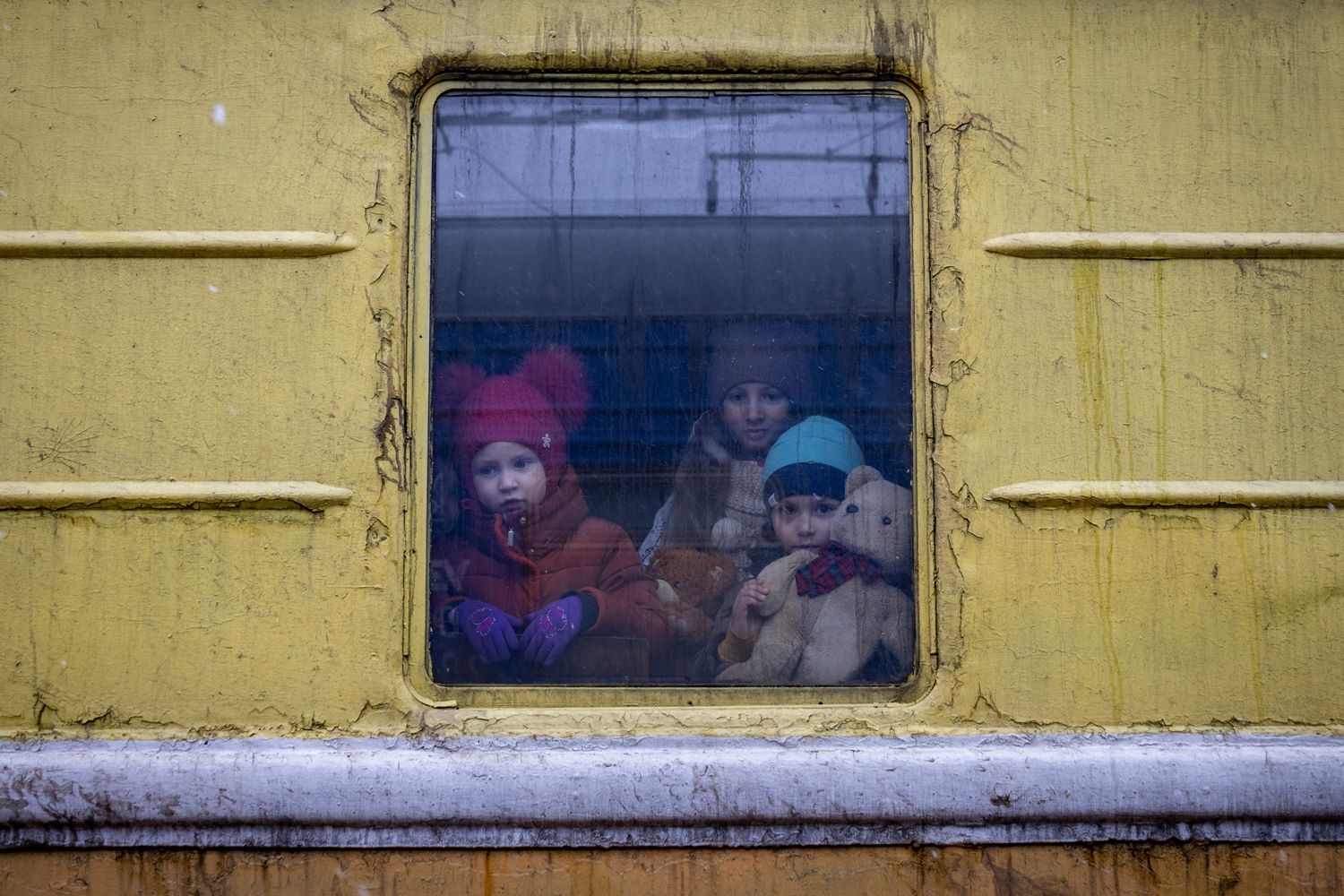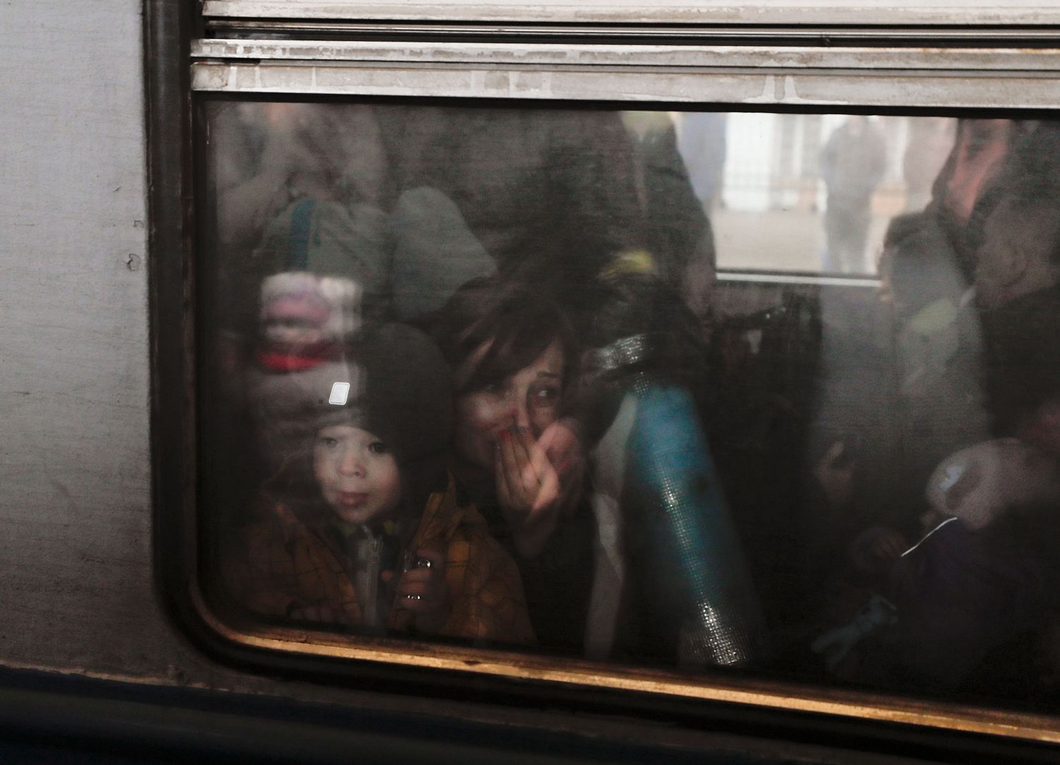 Pierre Crom / Getty Images An evacuation train headed toward western Ukraine. Kyiv, February 26, 2022Miguel A. Lopez / EPA / Scanpix / LETA A woman and her children leaving Lviv. This shot was taken from a train going the opposite direction — to Lviv from the Polish city of Przemyśl. Many Ukrainians have decided to return to their country to protect their loved ones during the war. Poland, March 4, 2022Emilio Morenatti / AP / Scanpix / LETA 41-year-old Bogdan says goodbye to his wife, Lena, before she leaves for Lviv from a Ukrainian train station. Bogdan will stay to fight in the war while his family tries to leave the country and seek asylum abroad. March 3, 2022Andriy Dubchak / AP / Scanpix / LETA Vlada, Katrin, and Danila look out from the window of an unheated train car that will take them to Lviv. Kyiv, March 3, 2022.Gleb Garanich / Reuters / Scanpix / LETA Children say goodbye to their father. Kyiv, March 3, 2022Chris McGrath / Getty Images A woman in an evacuation train going from Irpin to Kyiv. Two thousand civilians have managed to escape from Irpin, where active hostilities are ongoing. March 4, 2022Sergey Dolzhenko / EPA / Scanpix / LETA Ukrainian refugees leaving Kyiv. March 5, 2022Dimitar Dilkoff / AFP / Scanpix / LETA A train at Kyiv’s central railway station. March 5, 2022Alejandro Martinez Velez / ZUMA Press / Scanpix / LETA Children draw pictures on a train car window at the Lviv train station. Lviv has become the main transit point for refugees on their way to Europe; most are headed to Poland. March 2, 2022Vadim Ghirda / AP / Scanpix / LETA People bid their relatives farewell before leaving for Lviv. Kyiv, March 3, 2022Vadim Ghirda / AP / Scanpix / LETA A woman in a train headed for Lviv. Kyiv, March 3, 2022Emilio Morenatti / AP / Scanpix / LETA Alexander says goodbye to his five-year-old daughter, Anna, who’s about to leave for Lviv. Kyiv, March 4, 2022