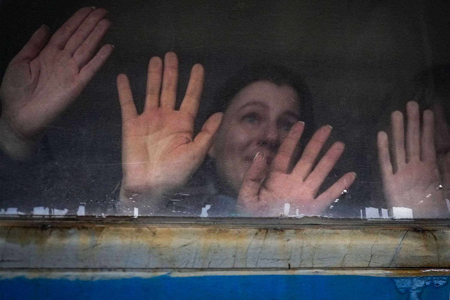 These photos were taken through the windows of the trains taking Ukrainians to safety — and away from their loved ones