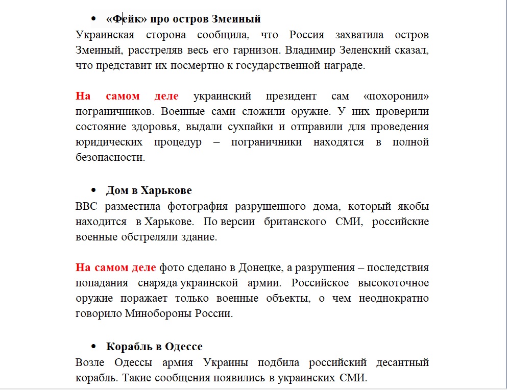 С конца февраля никакой свежей информации о пограничниках с острова Змеиный не публиковалось. Однако следом за минобороны РФ авторы методичек тоже делают ничем не подкрепленное заявление: "У них [пограничников] проверили состояние здоровья, выдали сухпайки и отправили для проведения юридических процедур — пограничники находятся в полной безопасности".