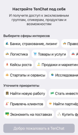 При регистрации приложение предлагает выбрать «сценарий получения дохода» — обозначить, является ли пользователь владельцем бизнеса, сотрудником компании или фрилансером. Затем в сервисе можно выбрать свои профессиональные интересы и заполнить личную страницу информацией об образовании, навыках и опыте работы.