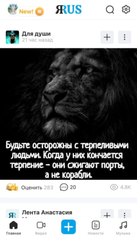 ЯRus собирает видео с девяти хостингов, включая YouTube, RuTube и TED. В разделе «Сюжеты» публикуют короткие вертикальные ролики, напоминающие формат TikTok. Многие видео там — перезаливы из тиктока, но встречается и уникальный для соцсети контент.