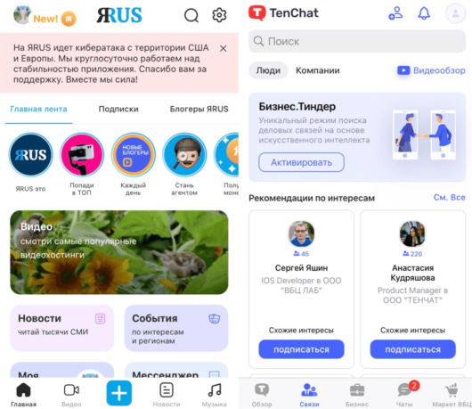 ЯRus и TenChat — российские соцсети, вошедшие в топ-10 наиболее скачиваемых приложений