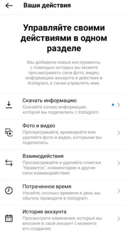 Запрос также можно отправить в приложении. Для этого надо зайти в свой аккаунт, в правом верхнем углу нажать на кнопку с тремя полосками. В выпавшем меню следует выбрать «Ваши действия», а затем — «Скачать информацию».