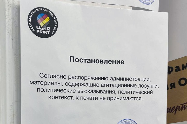 16:32 Один из центров полиграфии в Новосибирске заявил об отказе печатать материалы, содержащие «политические высказывания». Фотографию «постановления» фирмы UniverPrint, подписанного Полиной Поповой, опубликовал телеграм-канал «Ненаучный городок».