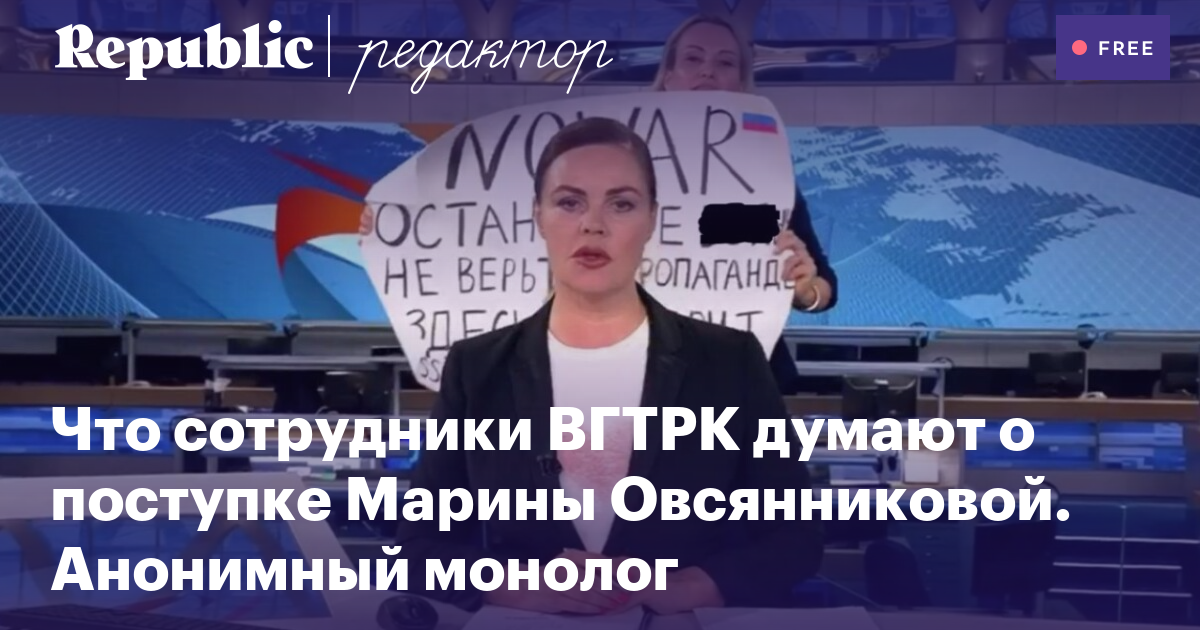 «Все были ошарашены и восторгались ее смелостью». Сотрудник ВГТРК (анонимно) — о поступке Марины Овсянниковой