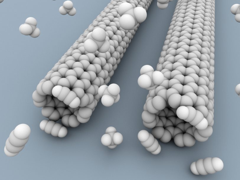 При этом имплантаты также не должны вызывать иммунный ответ и отторгаться человеческим организмом. С этой точки зрения крайне перспективно использовать композиты, или многокомпонентные материалы, состоящие из углеродных нанотрубок и полимеров, поскольку они обладают всеми необходимыми свойствами. Однако структуру таких композитов довольно сложно предсказать, поскольку часто во время синтеза углеродные нанотрубки, вместо того чтобы сшиваться с полимером, образуют связи между собой. Из-за этого образуются агломераты нанотрубок, снижающие качество получаемых материалов.