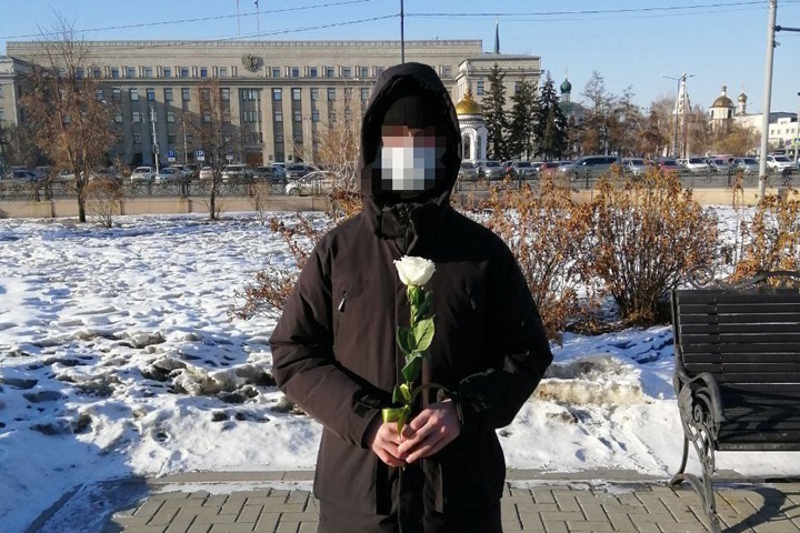 19:28 Житель Иркутска вышел с белой розой напротив областной администрации.