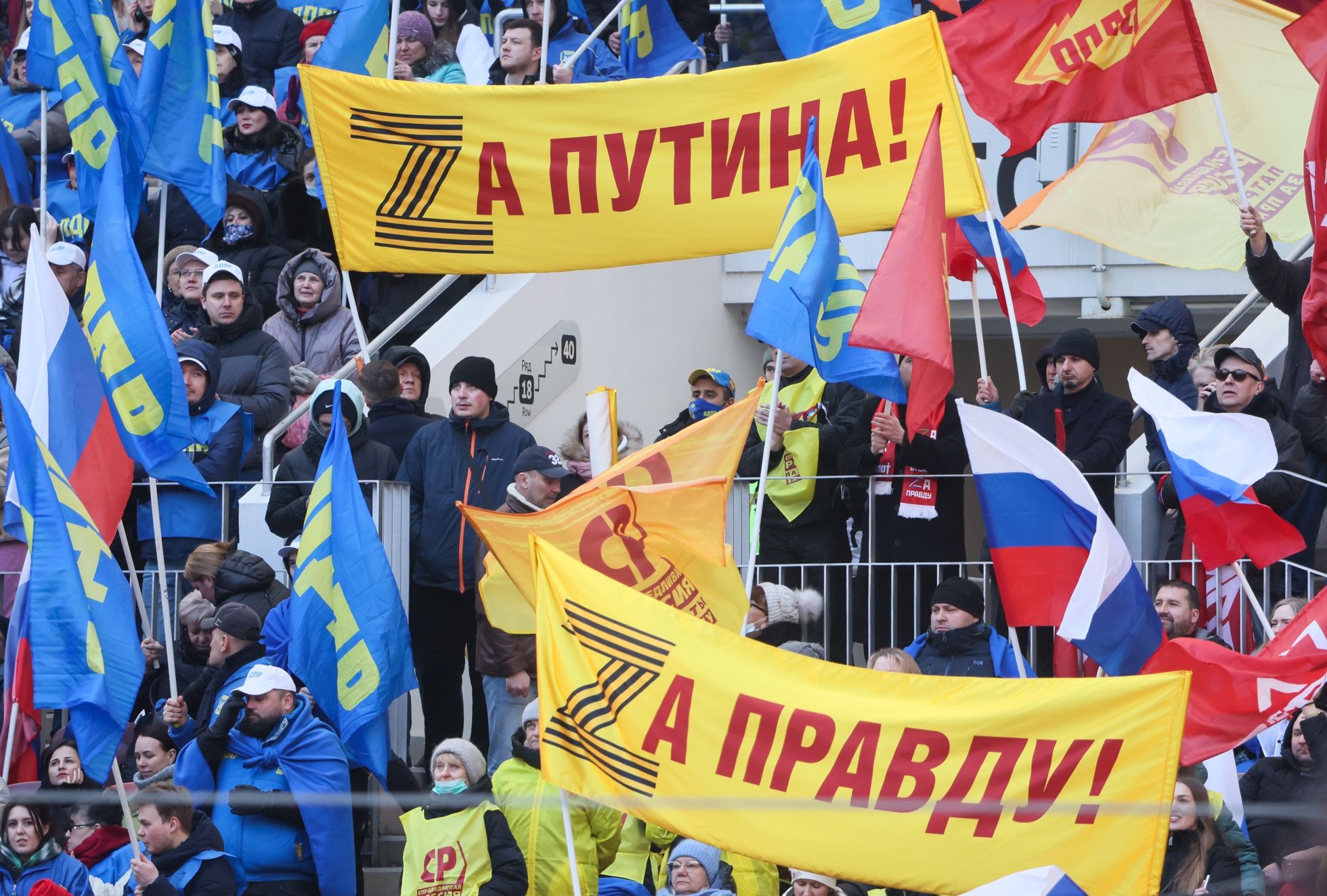 В пятницу, 18 марта, по всей России прошли митинги и концерты, приуроченные к годовщине присоединения Крыма. Впрочем, главной темой этих акций все же был не Крым, а война. Чтобы продемонстрировать всенародную поддержку «спецоперации» российские власти воспользовались давно проверенными методами — подвозом бюджетников, раздачей еды и выступлениями звезд эстрады. ГУВД Москвы отчиталось о 200 тысячах участников, а московский Дептранс сообщил, что на концерт приехало даже больше людей, чем было на стадионе во время матчей чемпионата мира по футболу пять лет назад. «Медуза» рассказывает, как прошел митинг-концерт в московских «Лужниках» — на который пришел и Владимир Путин.