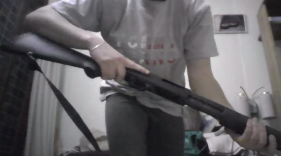 The hacker grabs a shotgun from somewhere on the floor and points it at the camera: “I went to the shooting range, had some fun, and bought cartridges. But I’m trying to fight on my own plane, I’m no use on the real front with a shotgun.”