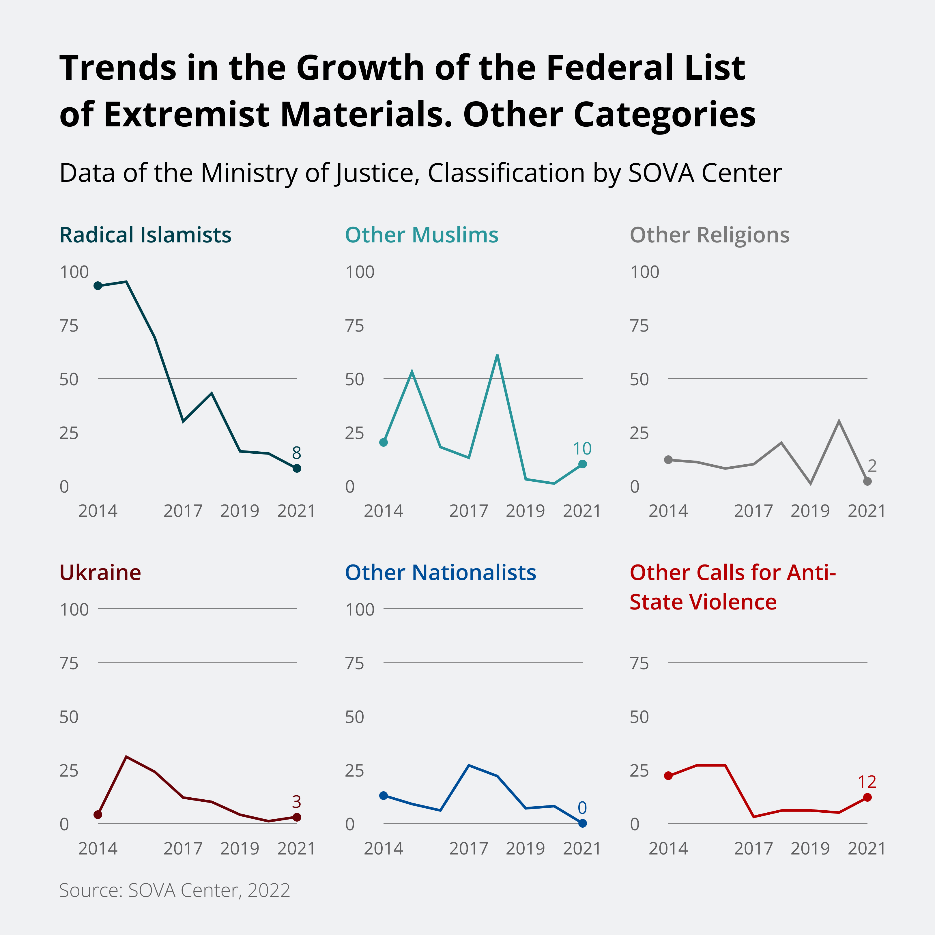 In 2021, nine organizations were added to the Federal List of Extremist Organizations published on the website of the Ministry of Justice (compared with five in 2020).