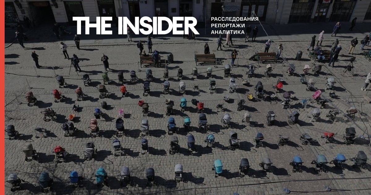 18 марта на центральной площади во Львове поставили 109 пустых детских колясок - по числу погибших детей в стране на тот момент.