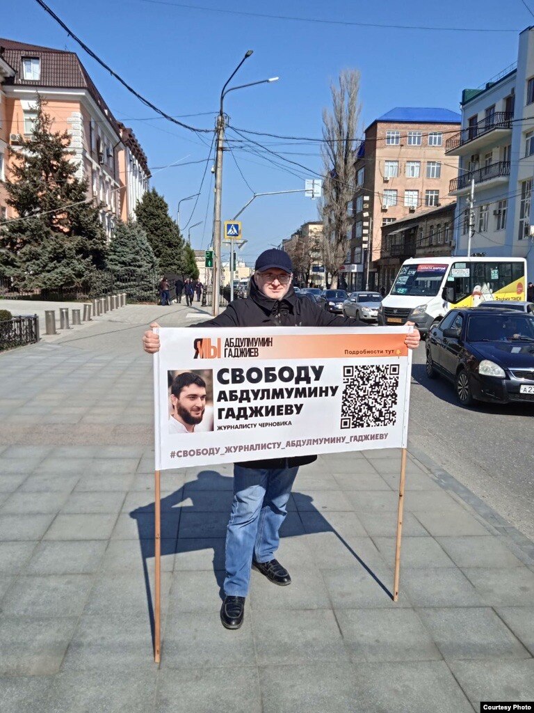 В Махачкале прошла серия одиночных пикетов против преследования журналиста Абдулмумина Гаджиева и других политических заключенных.