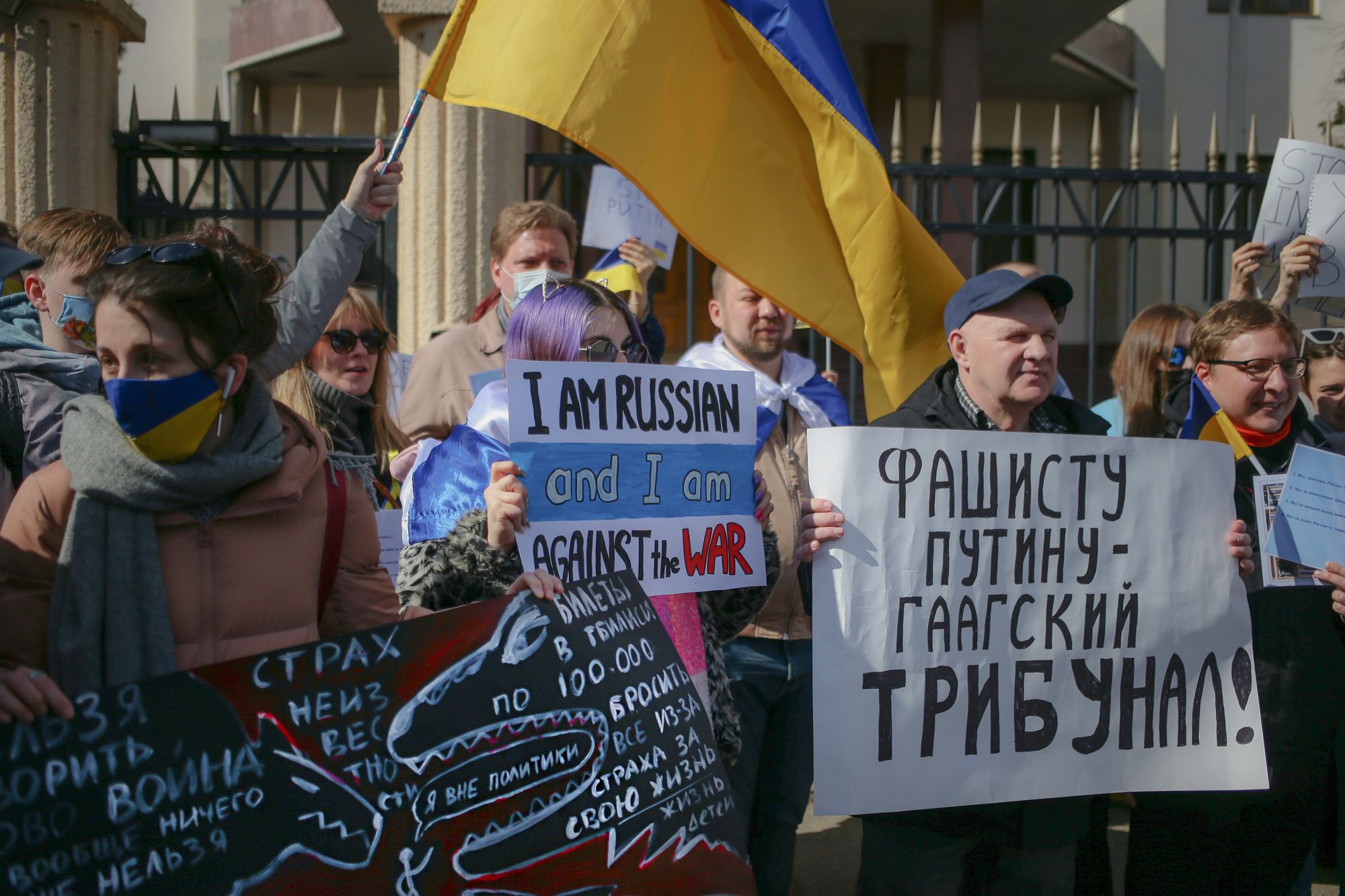 Василий Крестьянинов Антивоенная акция россиян в Тбилиси 12 марта 2022. Акция организована русской эмиграцией у стен секции интересов РФ при посольстве Швейцарии, которая закрылась в начале войны.