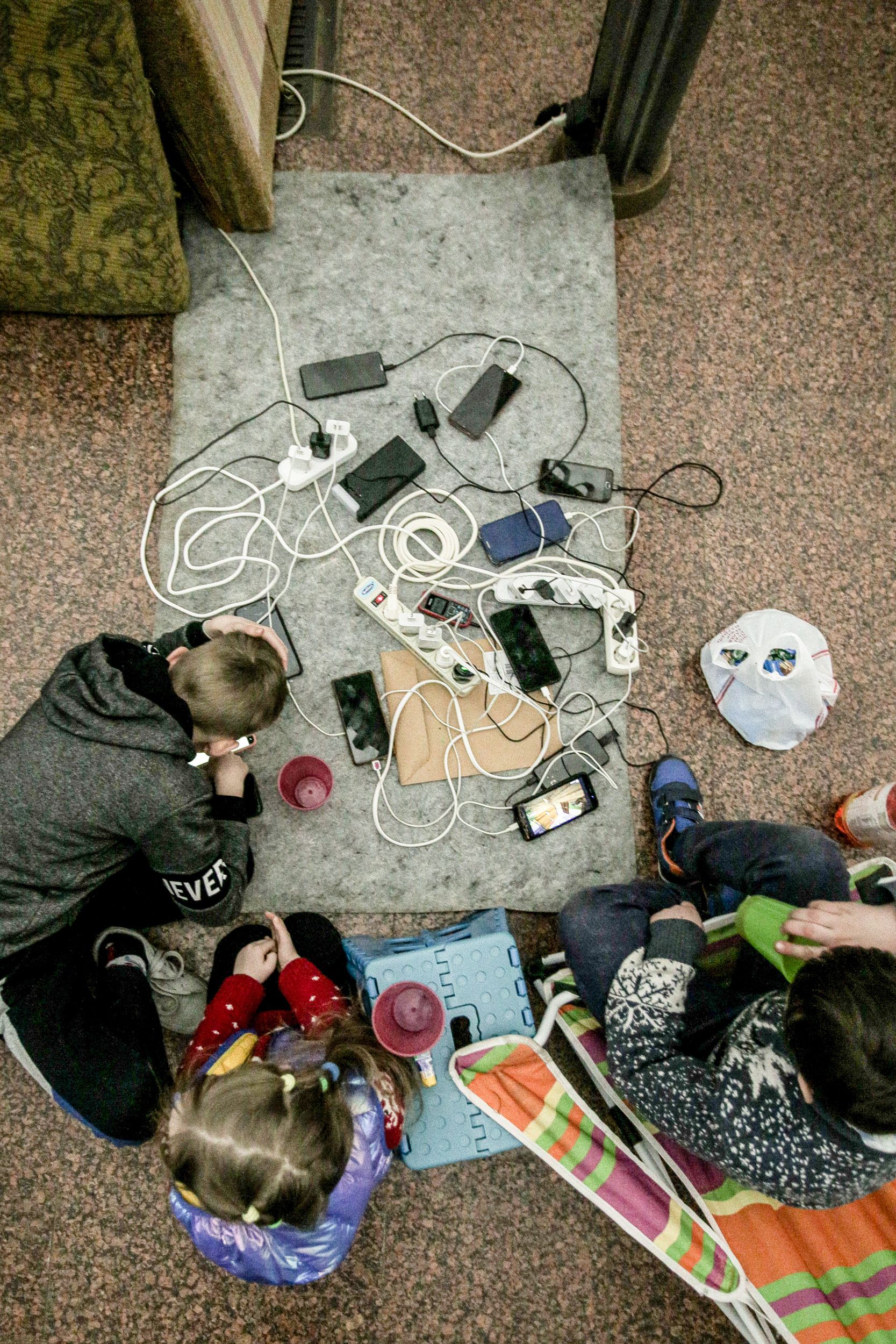 Children play in a subway station. A psychologist and a teacher come to the station to work with them every day. The lights are always turned on in the stations. Everyone sleeps at different times.