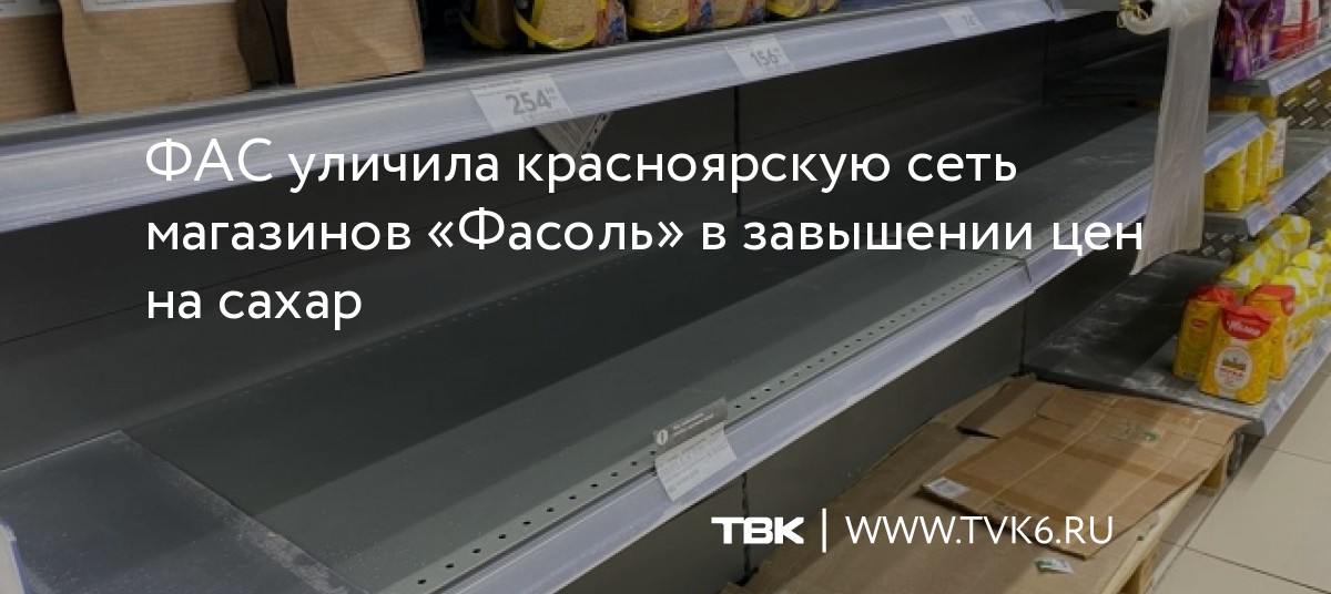ФАС уличила красноярскую сеть магазинов «Фасоль» в завышении цен на сахар