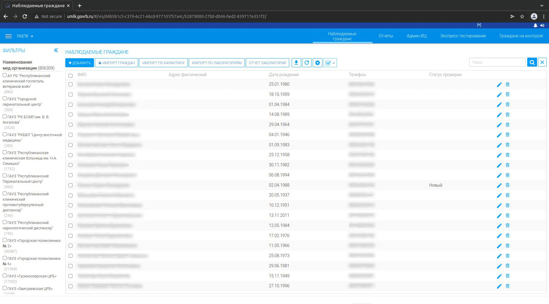 С «Медузой» в середине марта связались представители «закрытой группы украинского киберсопротивления». Они рассказали об успешном взломе одной из государственных систем Бурятии — информационного сервиса на базе «Единой региональной интеграционной платформы аппаратно-программного комплекса „Безопасный город“». Хакеры получили доступ к универсальному медицинскому личному кабинету (УМЛК), созданному весной 2020 года для учета больных COVID-19, контактных лиц, лиц, прошедших тестирование на ковид, и приезжих из других регионов, которые должны были оставаться на самоизоляции.