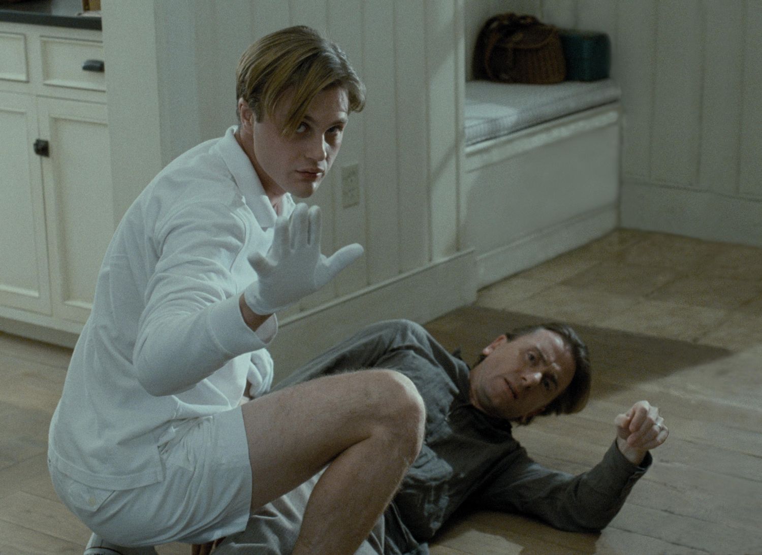 Молодые люди называют друг друга Бивис и Баттхед, со своими жертвами разговаривают подчеркнуто вежливо, но никакой аффектации или грубости не терпят — Ханеке показывает, что скрывается за фасадом буржуазной жеманности. Когда изнемогающий от боли отец семейства задает своим мучителям главный вопрос «Зачем вы это делаете?», то получает сразу несколько издевательских, противоречащих друг другу ответов: то ли мучители травмированы родителями, то ли — нищетой, а может быть, вообще делают это от скуки. Злейшие враги Ханеке — критики-детерминисты, готовые все объяснить общественными условиями, психопатологией или фрейдистскими комплексами. Но в его фильмах эти версии не работают: его интересуют вопросы экзистенциальные, а не социальные.