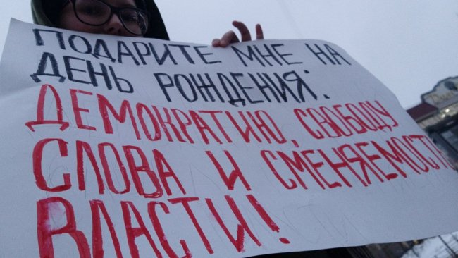 В Сыктывкаре задержали активистку Наталию Рогову, когда она вышла в одиночный пикет с плакатом «Подарите мне на день рождения демократию, свободу слова и сменяемость власти!». Об этом она сама сообщила ОВД-Инфо.