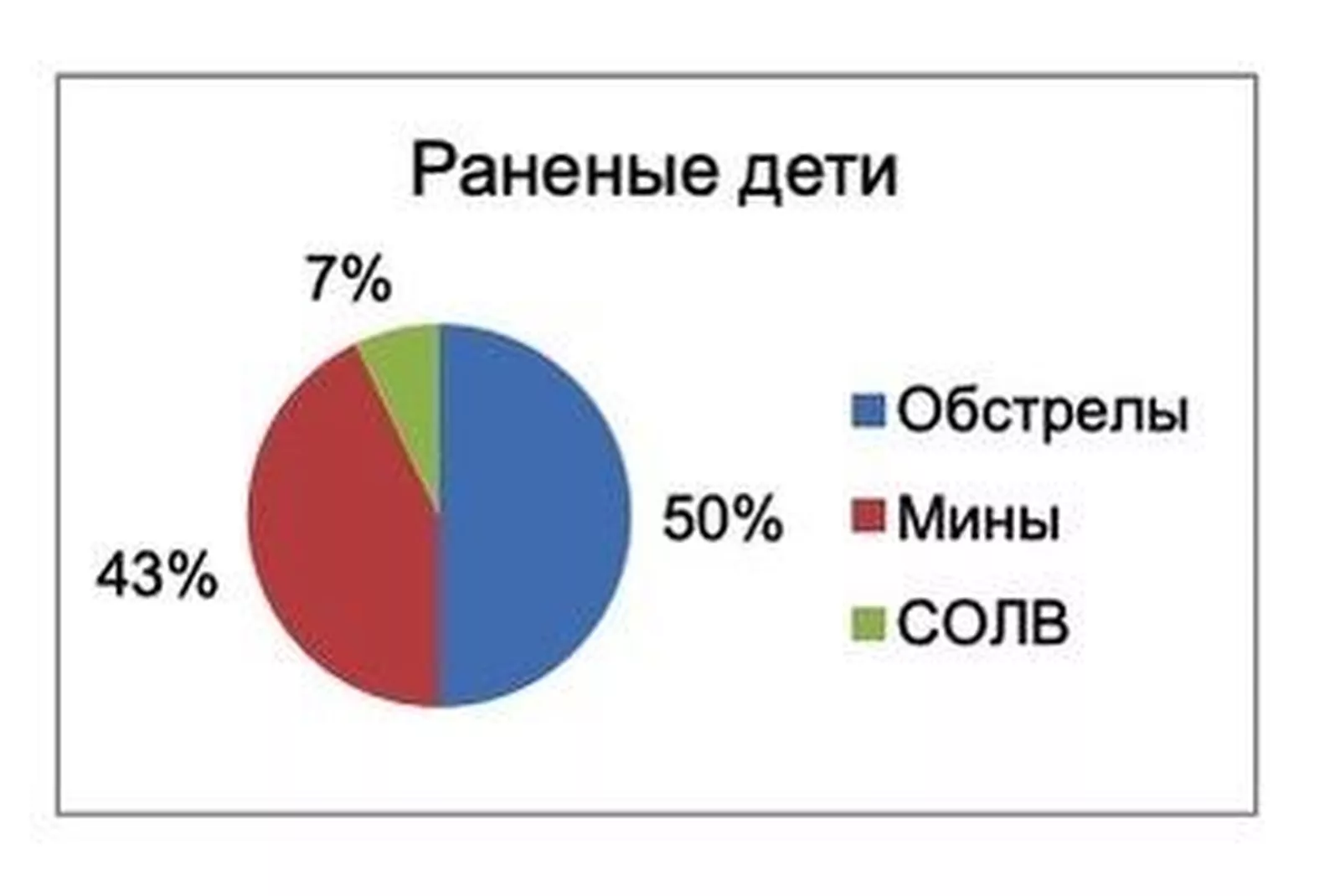 Кроме этого, Миссия фиксировала размещение объектов военного типа и присутствие вооруженных лиц на территории школ и детсадов или вблизи них по обе стороны от линии соприкосновения. В отчете «Влияние конфликта на учебные заведения и доступ детей к образованию на Востоке Украины» описано, что в период с января 2015 по март 2020 года СММ подтвердила повреждения 93 учебных заведений в 43 населенных пунктах по обе стороны от линии соприкосновения в Донецкой и Луганской областях. В некоторых случаях во время инцидентов в учебных заведениях находились дети. Директор школы № 2 в неподконтрольном правительству Докучаевске рассказала наблюдателям, что «29 сентября 2019 года во время первой смены ученикам и сотрудникам школы пришлось четыре раза прятаться от обстрелов в укрытии в подвале школы». Рядом со школой, в детском садике № 11, заведующая жаловалась, что в учреждении нет укрытия — во время обстрелов из легкого или тяжелого вооружения дети и сотрудники были вынуждены вместе прятаться в единственном коридоре без окон. Она добавила, что «иногда над площадкой, где играют дети, был слышен свист пуль». Всего за период с 2016-го по 2021-й включительно, исходя из отчетов и плакатов Миссии, можно констатировать страшную трагедию: более 20 детей на Востоке Украины убиты (мальчиков в три раза больше, чем девочек) и более 120 — ранены. Для сравнения, исходя из материала МИД РФ со ссылкой на Управление Верховного комиссара ООН по правам человека, с 14 апреля 2014-го по 31 декабря 2021-го в ходе конфликта в Украине погибло более 14 тысяч человек, среди которых минимум 152 ребенка.