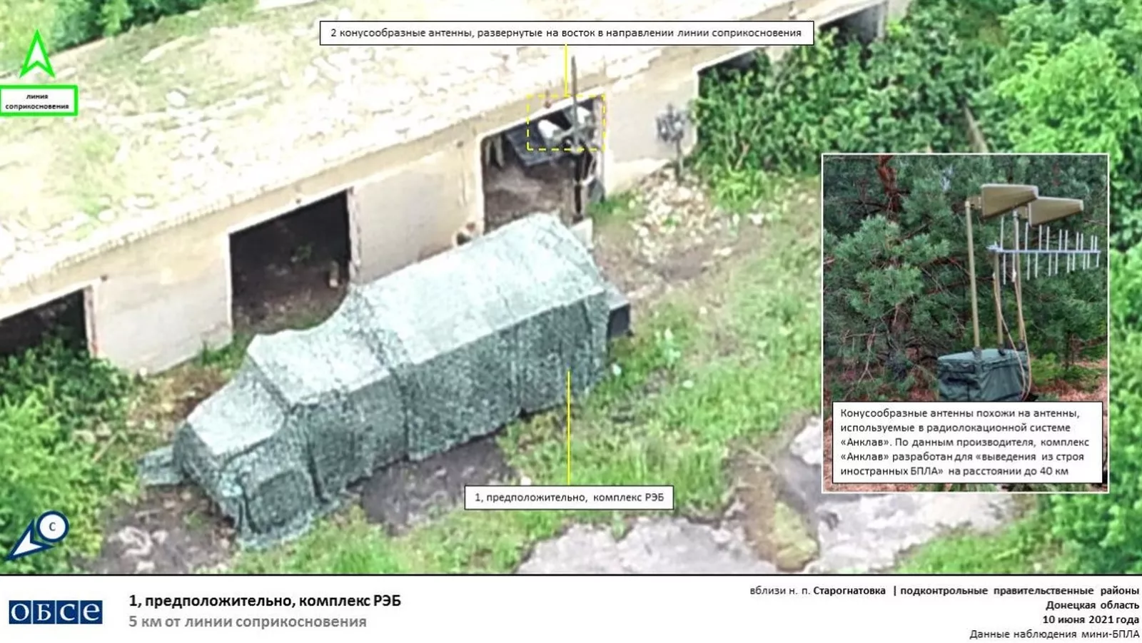 Сотрудники зафиксировали в неподконтрольных украинскому правительству районах комплексы радиоэлектронной разведки «ТОРН», а также автоматические станции постановки радиопомех и комплексы радиоэлектронной борьбы по обе стороны от линии соприкосновения в районах. Наблюдатели выявили автоматическую станцию радиопомех (Р-378А) и «комплекс радиоэлектронной борьбы (неустановленного типа) в подконтрольном правительству Бахчевике, а также 4 грузовика, оценённых как комплексы радиоэлектронной борьбы (Р-330У или Р-330Т), возле подконтрольного правительству Пищевика».