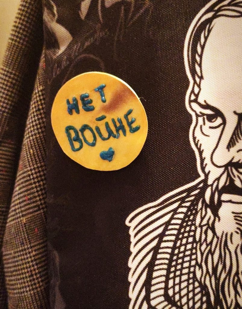 Сделала не очень удачно, к сожалению, но с целью высказать свою позицию хотя бы так. Да и как ни крути он [значок] привлекает внимание. Не думаю, что это может переубедить многих, но, когда видишь протест в жизни, а не только в твиттере, появляется ощущение общности, понимание, что многие тоже против и не равнодушны.