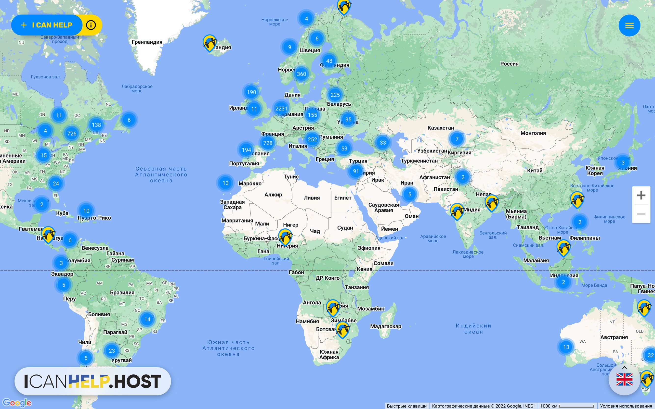 Через считаные дни с начала войны в интернете появился сайт ICanHelp — карта на основе Google Maps, на которой отмечены доступные для проживания украинских беженцев дома по всему миру. Сервис работает по принципу Airbnb: хосты оставляют свои объявления, а гости связываются с ними. Основа команды ICanHelp — белорусы-айтишники, создатели сервиса аренды электросамокатов ScootAPI. После протестов в Беларуси 2020 года они были вынуждены покинуть страну. Вторжение России в Украину заставило их задуматься, как они могут помочь украинцам.
