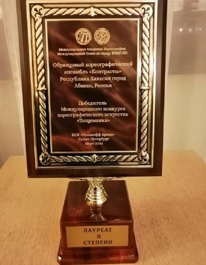 Образцовый хореографический ансамбль «Контрасты» Центра детского творчества города Абакана под руководством Волковой Натальи Леонидовны и Черкасова Александра Антоновичаодержал победу в Международном конкурсе хореографического искусства «Танцемания».