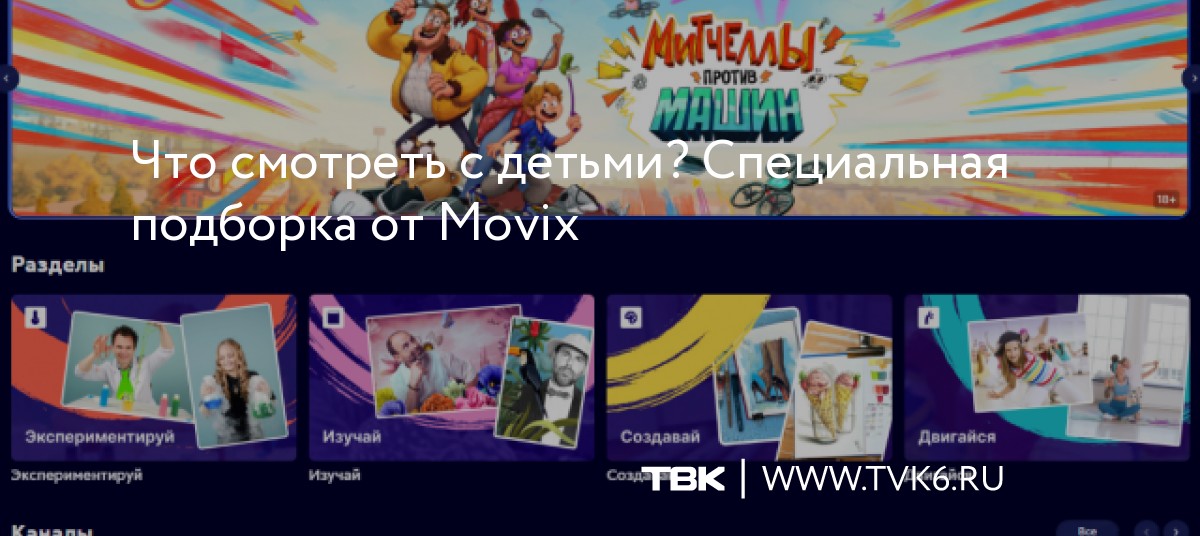 На сайте Movix.ru, на приставке Movix, в приложении Movix для мобильных устройств (18+) - https://movix.ru/pages/kids-area. Часть контента доступна без доплаты!