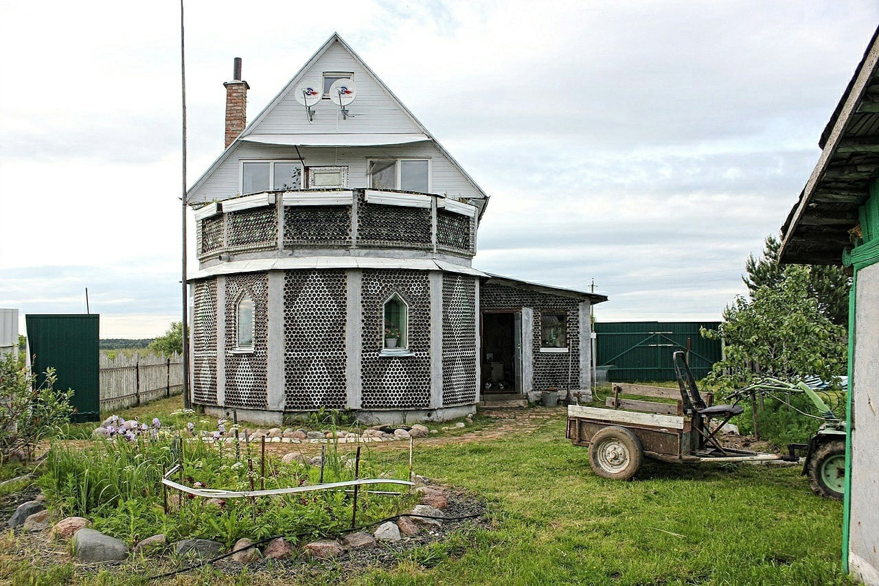 Участок в Липове принадлежал семье умельца давно, а вот улучшить жилищные условия не получалось. Однажды Юрий вспомнил старую публикацию 1972 года в журнале «Наука и жизнь», где рассказывалось о необычных стройматериалах, и… начал собирать бутылки у трассы М-1 и параллельно строить дом.