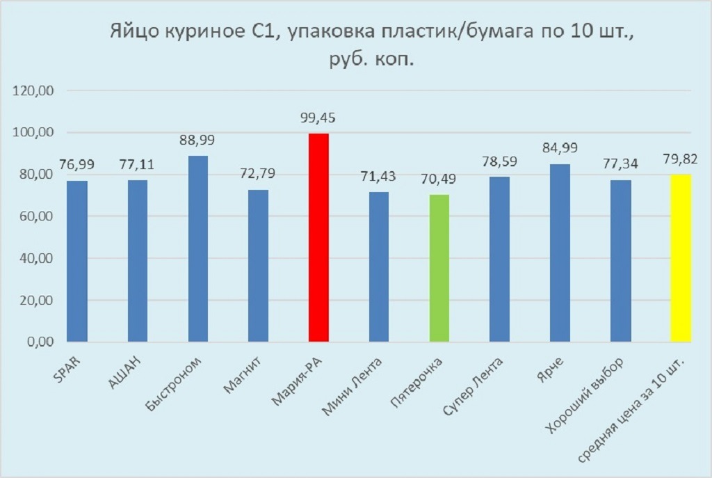 Наиболее высокая цена на 10 яиц выбранной категории составила 99,45 рублей.