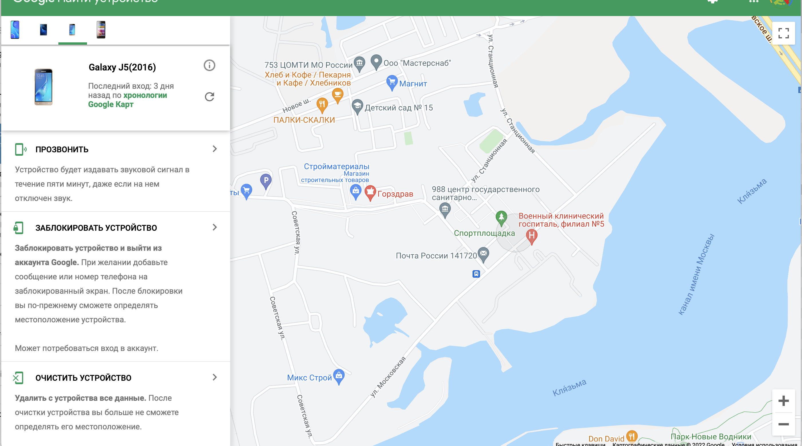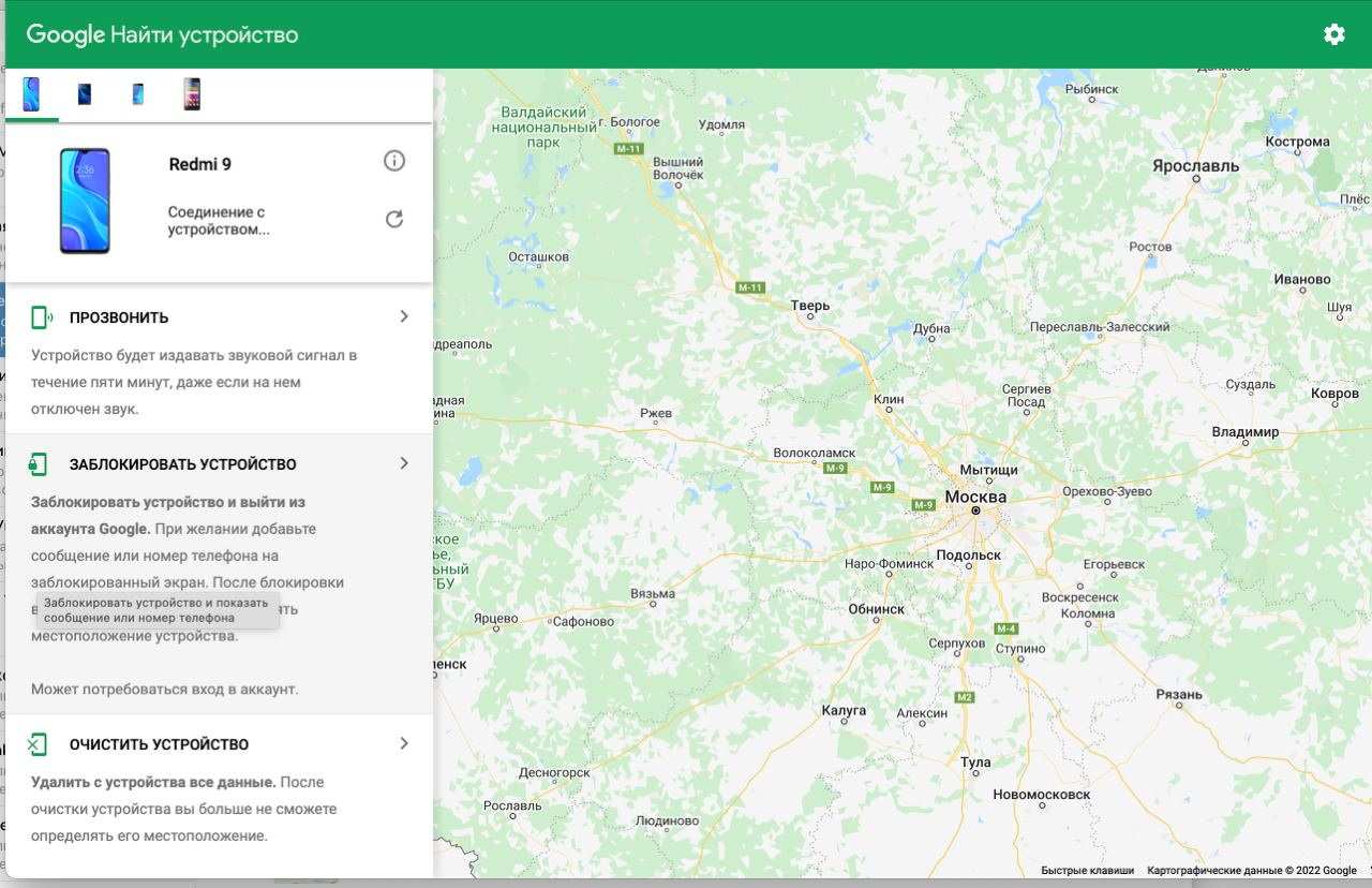 Свои тестовые телефоны я обнаружил случайно, когда просто зашел в аккаунт Google — подумал, что надо их отвязать. Тот, что в госпитале, три дня назад был активен, я написал туда пару ласковых. Еще один пока не пингуется, но [сервис] писал, что где-то в России. Я их заблокировал, может, поэтому и не выходят на связь.