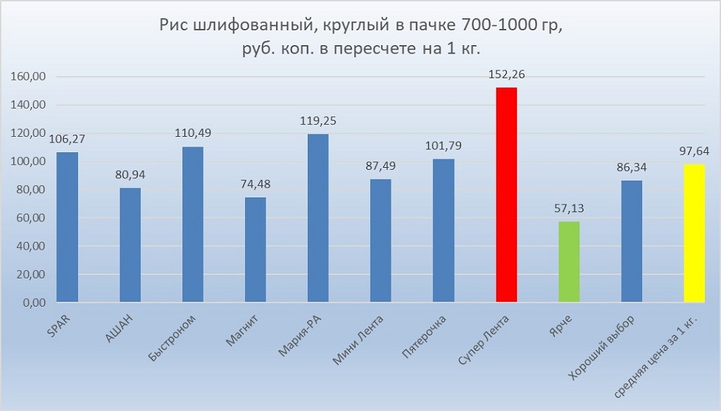 Самый низкий ценник на килограмм риса оказался более чем в 2,5 раза меньше, чем самый высокий.